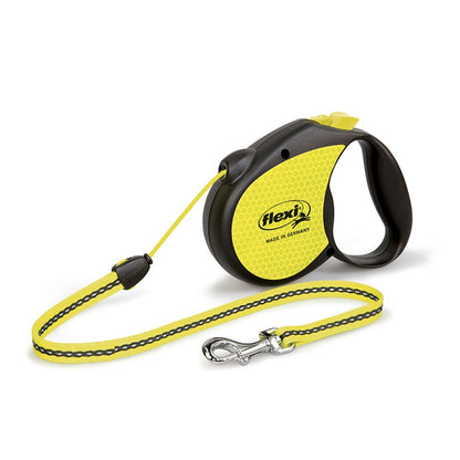 FLEXI Neon Cord Dog Leash is more than just a high-quality leash—it’s designed to excel in all weather conditions. Its reflective stickers and vibrant neon-colored components make it highly visible, ensuring both you and your dog are safer during walks, whether it’s day or night, rain or shine. This leash combines durability with eye-catching design, making it easy to spot even in low light.