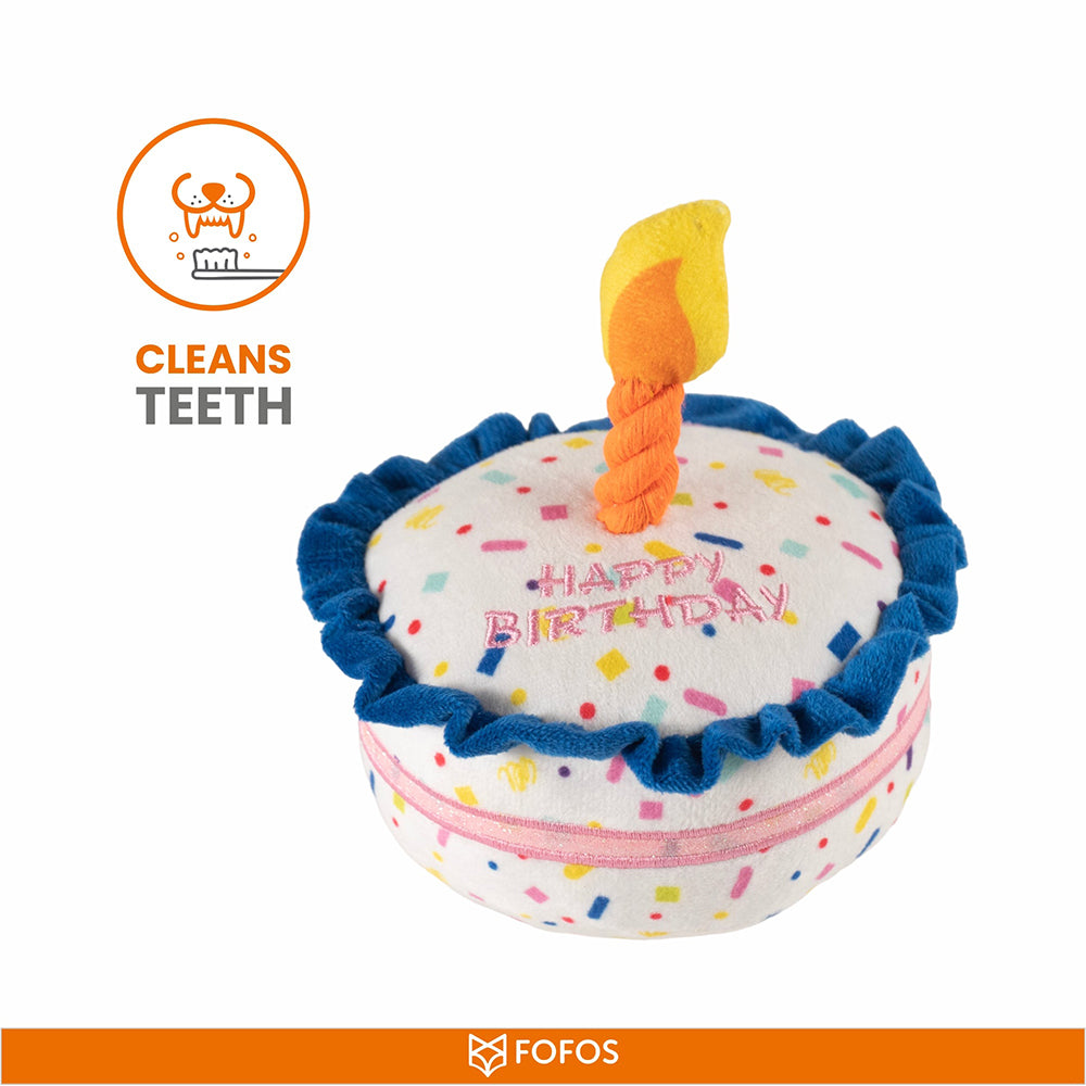 FOFOS Birthday Cake Plush Squeaky Dog Toy is perfect for fun and interactive play, with multiple designs to choose from. Filled with high-quality PP cotton for excellent resilience, it won’t collapse after prolonged chewing. The double filling adds extra fullness, and the squeaky sound grabs your dog's attention. Bite-resistant, tear-resistant, and pull-resistant, this toy ensures long-lasting fun. It's also shed-resistant and gentle on teeth, making it a safe and enjoyable choice for your pet.