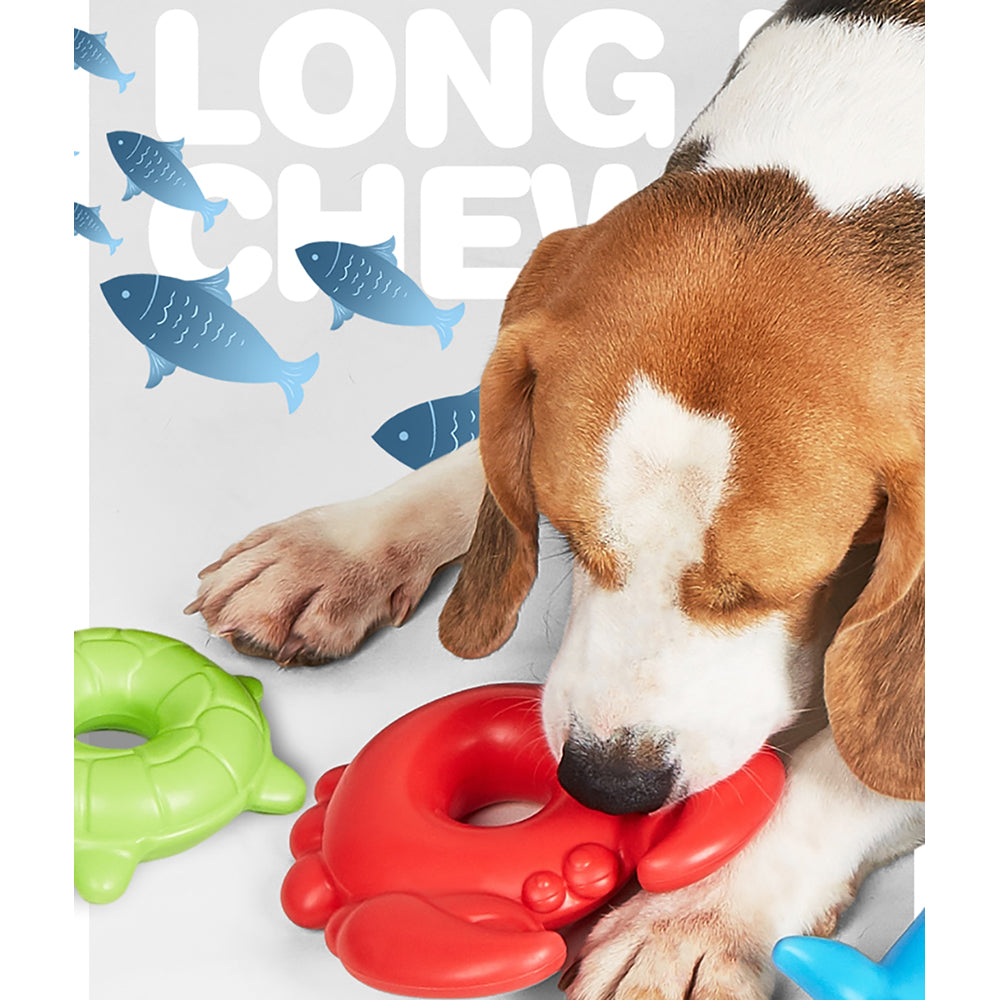 FOFOS Ocean Animal Chewing Squeaky Dog Toy offers companionship and stress relief while protecting your home from damage. It’s squeaky and durable, with a sound that engages and excites dogs. Made from high-quality natural rubber, it features special modifications for a longer lifespan. The toy rinses clean instantly, eliminating bacteria, and can be sanitized with wet wipes, though sound holes should be avoided during rinsing. Its smooth, rounded design ensures even pressure distribution, and the uniform wall thickness reduces the risk of cracking. Safe, non-toxic, and odorless, it provides peace of mind for your dog's chewing needs.
