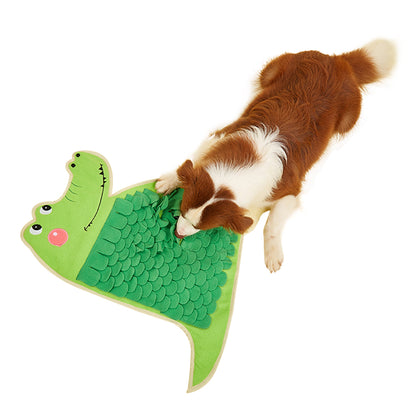 Unwind the excitement, unleash your dog's senses, and unwrap a world of fun with the FOFOS Sniffing Mat Crocodile Treat Puzzle Dog Toy. Designed to engage your pup's natural instincts, this innovative toy offers a multi-sensory experience that will keep tails wagging and minds engaged.
