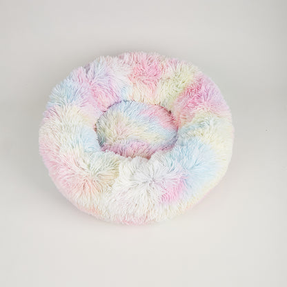 FOFOS Tie-Dye Donut Pet Cuddler Bed is fluffy and breathable, providing a pressure-free and carefree sleep. It’s so soft that cats can’t stop kneading, helping them quickly relax and enjoy comfort. Double-filled with PP cotton and made from premium plush material, it is both soft and skin-friendly. Suitable for both cats and dogs, this bed ensures your pets stay comfortable and happy.