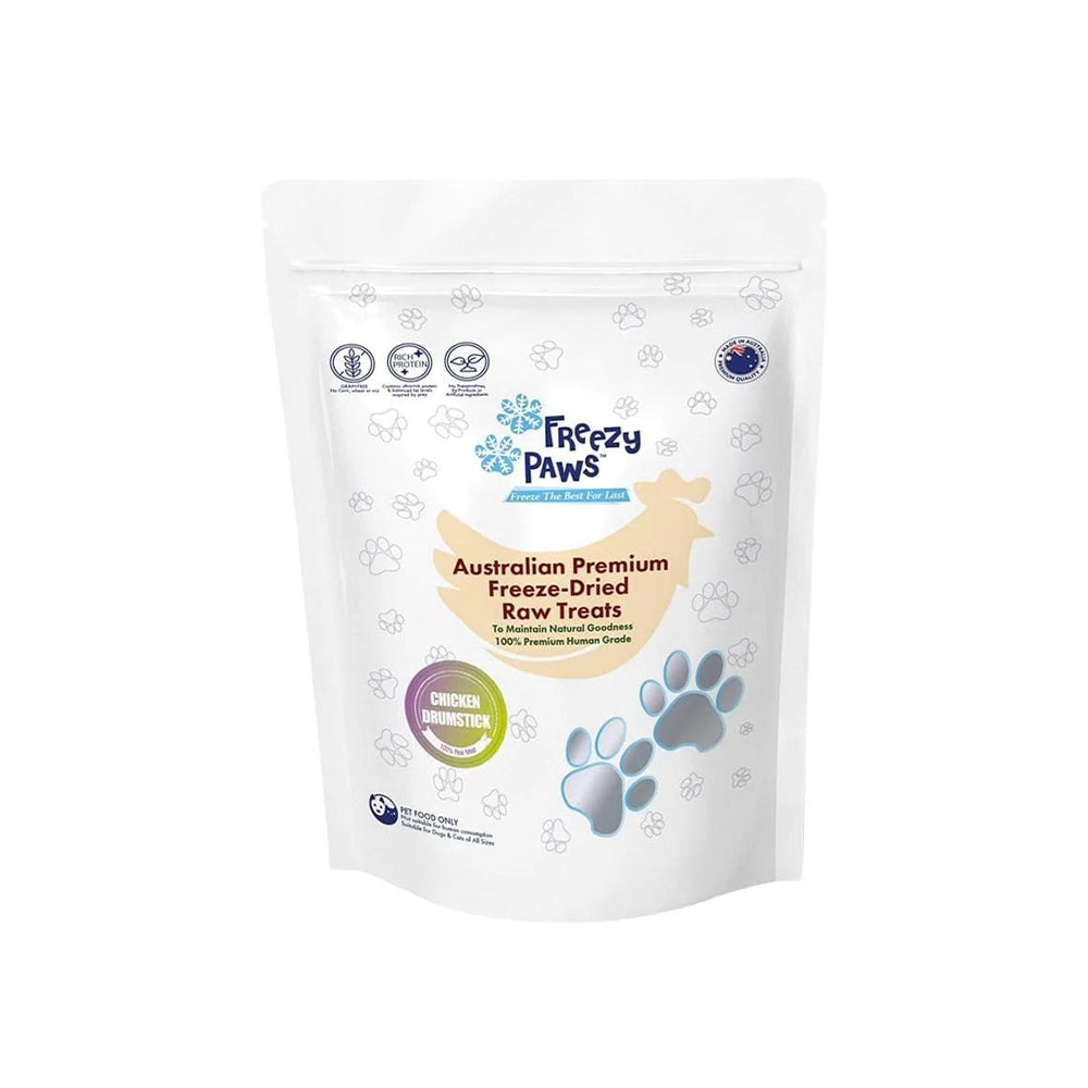 FREEZY PAWS Chicken Drumstick Freeze Dried Pet Treats 100g have been freeze-dried to lock in all the nutrients and vitamins of raw meat, so your dog gets the most benefit from them. They are grain-free and gluten-free, making them a good choice for dogs with food allergies or sensitivities. They are also rich in protein, providing your dog with the essential nutrient he needs to stay strong and healthy. And since these treats contain no added preservatives, colours, flavours, fillers or any artificial ingredients, you can be sure your dog is getting only the best.