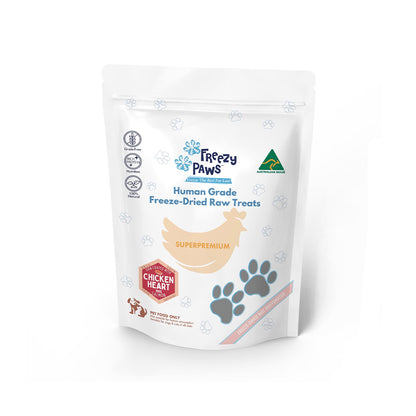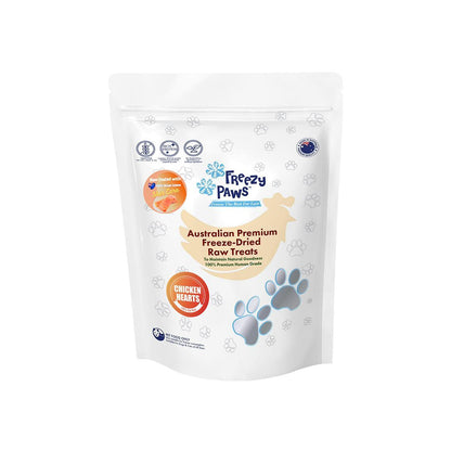 FREEZY PAWS Chicken Heart Coated with Salmon Freeze Dried Pet Treats 100g small-batch treats are made in Australia using only the highest-quality, human-grade ingredients. And because they're freeze-dried, all the nutrients and vitamins are locked in – meaning your pet is getting a nutritious snack that tastes great too!