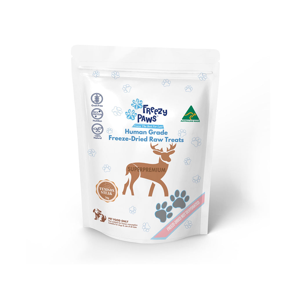 Freezy Paws Venison Steak Dogs & Cats Treats 70g are free from artificial colors, flavors, and preservatives, making them a healthy and tasty treat that your pets will adore.