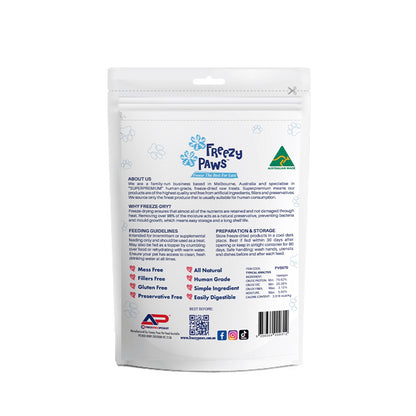 Treat your furry friends to the delicious and nutritious Freezy Paws Venison Steak Dogs & Cats Treats 70g. Made with high-quality, natural ingredients, these treats are perfect for both dogs and cats. Real venison is the main ingredient, providing a rich source of protein and nutrients that support your pet's overall health and well-being.