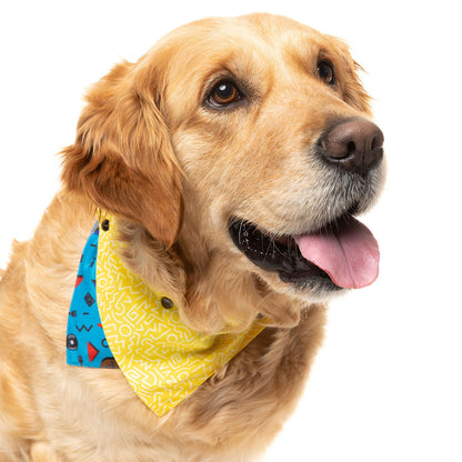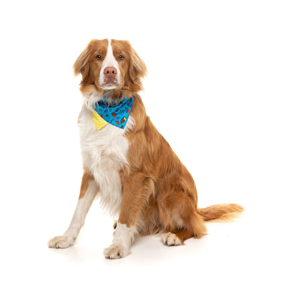 Introducing FUZZYARD Kings Of Gold School Bandana for Medium and Large Dogs, our latest product that is perfect for pet owners. The versatile bandana comes with two unique patterns suitable for the dog. Whether your furry friend is feeling playful or a little more reserved, you can simply flip the bandana to match their mood. Our bandana is designed with convenience in mind, making it effortless to attach to your pet's collar. Just fold it over the collar and snap the press studs into place, and you're ready to go, it's that easy.