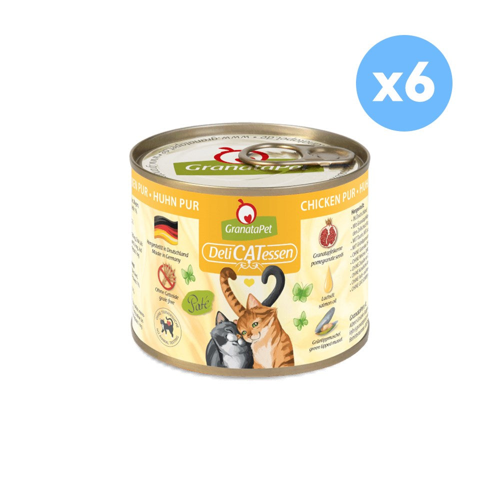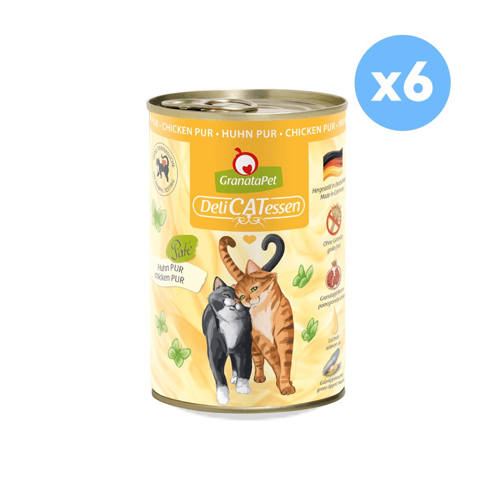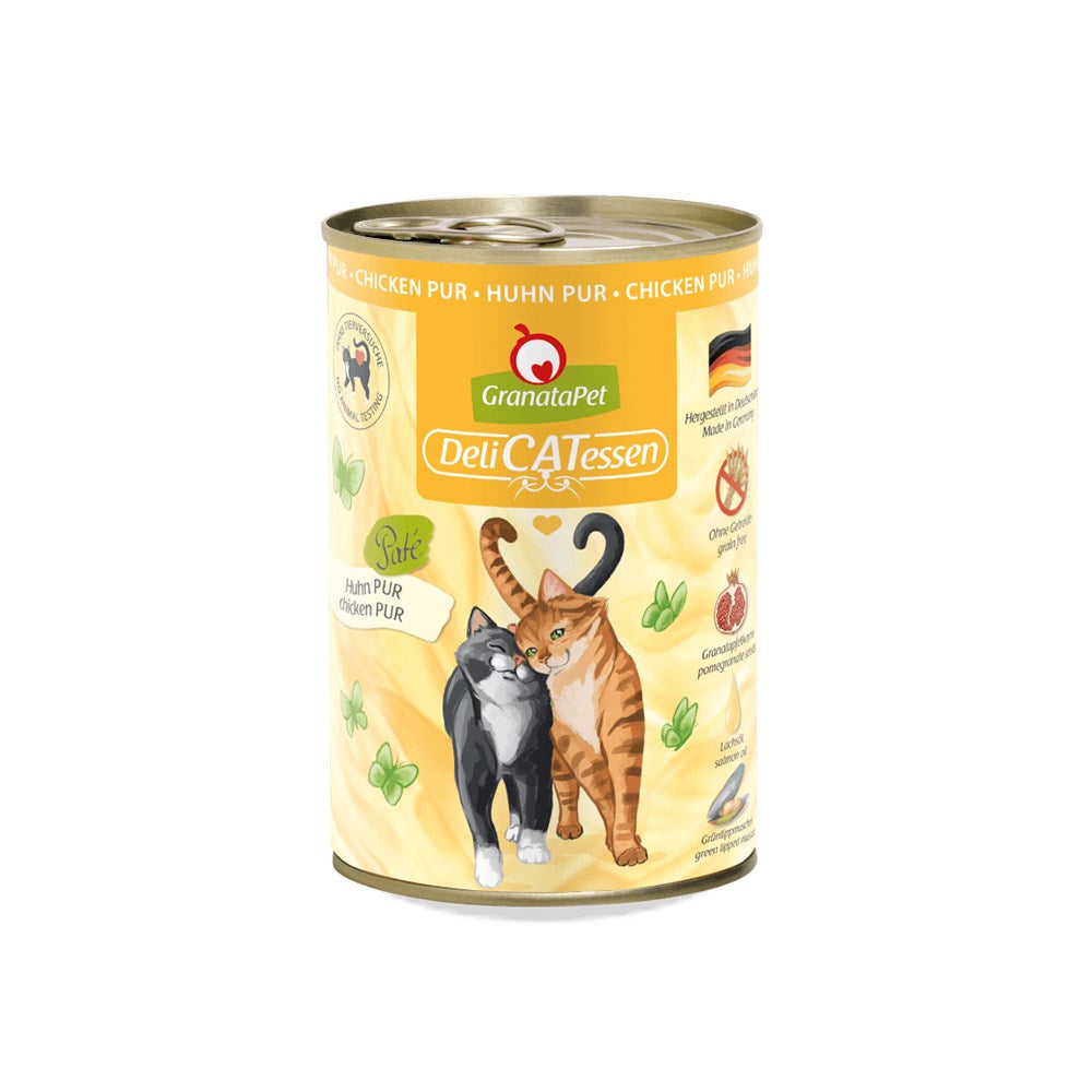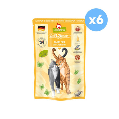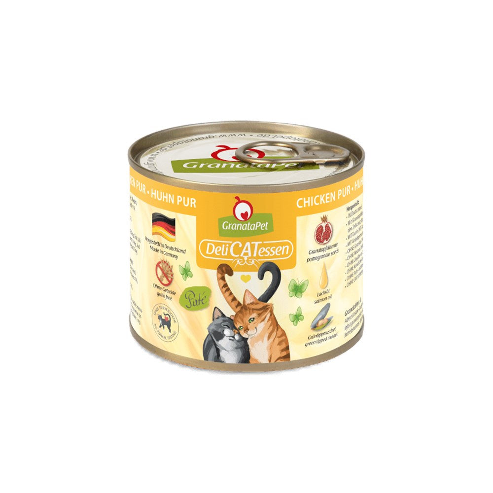 GRANATAPET Delicatessen Chicken Pur Cat Wet Food, providing a high-quality protein source that ensures the product's deliciousness and nutritional value. The inclusion of pomegranate seeds not only enriches the food's flavor but also offers additional cell protection, aiding in enhancing the cat's physical condition. Rich in Omega-3, salmon oil significantly contributes to maintaining the cat's skin health and fur luster. Additionally, the product is fortified with 1% mineral nutrients and 0.1% green-lipped mussel, ingredients that not only meet the daily nutritional needs of cats but are particularly beneficial for joint health, making it a comprehensive and balanced health food tailored for adult cats.