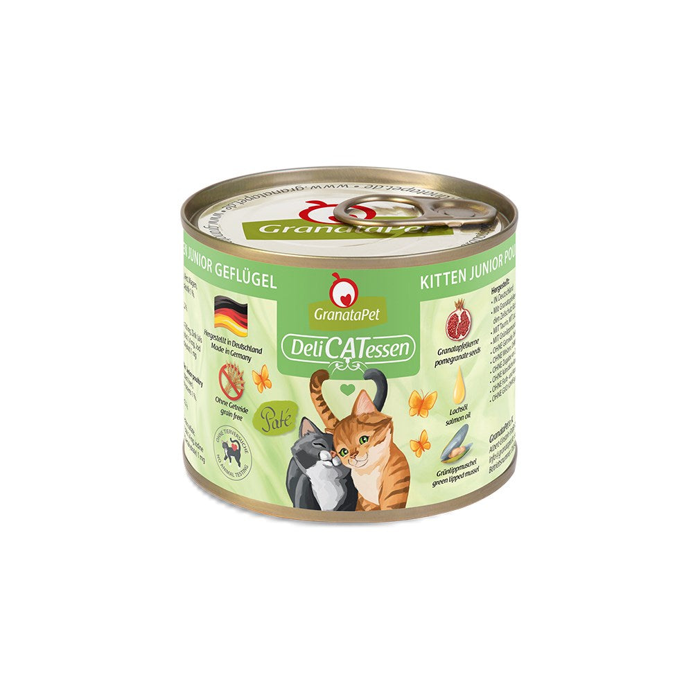 GRANATAPET Delicatessen Poultry Kitten Wet Food is an exclusive blend of high-quality muscle meat and offal, meticulously crafted to perfection. Enriched with essential unsaturated fatty acids, this premium formula boasts anti-inflammatory benefits for improved skin and coat. Designed to promote vision and heart health, it enhances overall feline well-being. Packed with vitamins, minerals, and potent natural antioxidants, it acts as a preventive measure against signs of wear and tear, supporting cartilage preservation. It's Finest Cat Cuisine is more than just a meal; it's a delectable symphony of nutrition and taste, ensuring your cat thrives in every bite.