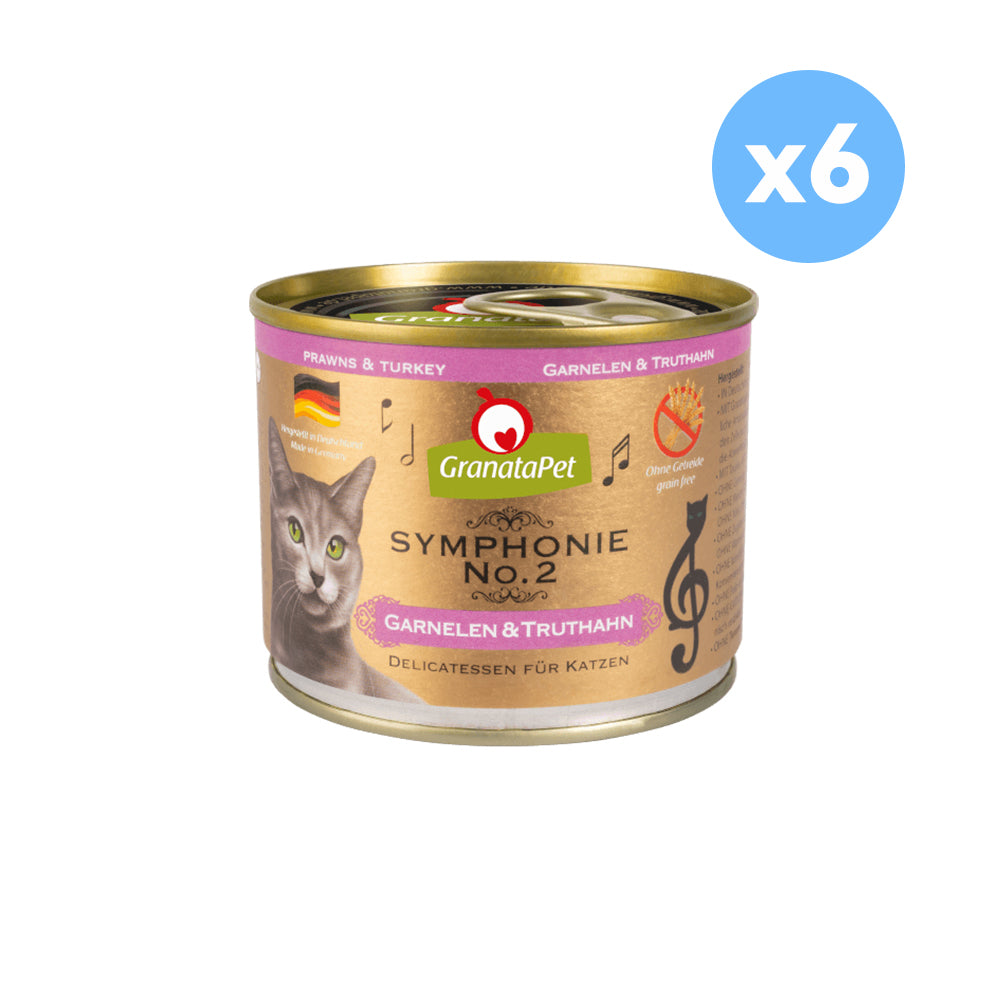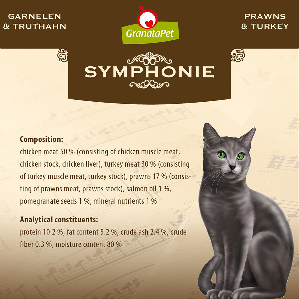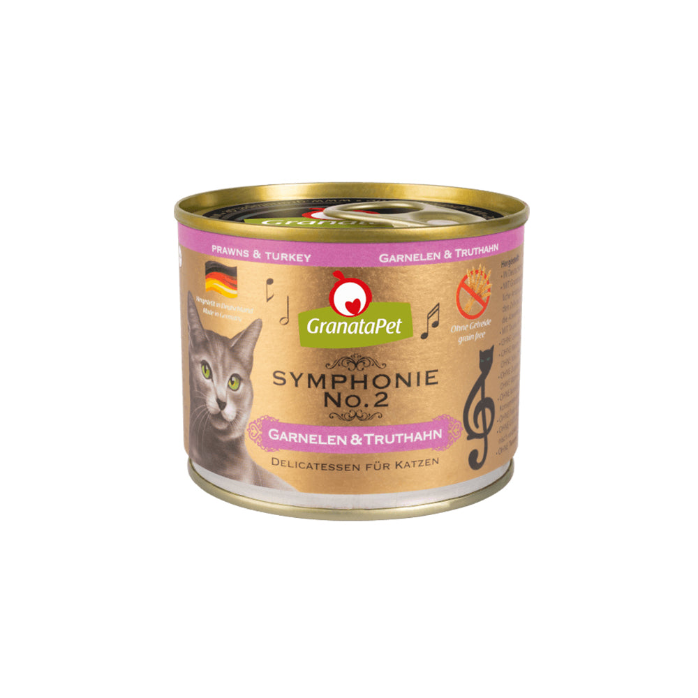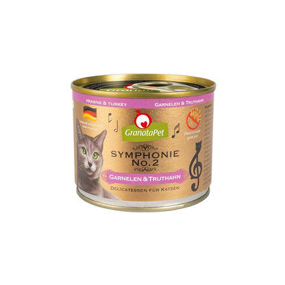 Experience the perfect blend of simplicity and flavour with GranataPet Symphonie No. 2 Prawns & Turkey Cat Wet Food. The gentle cooking process creates a delicious jelly filled with essential nutrients plus, juicy prawns and tender turkey. It's a taste your cat will adore.