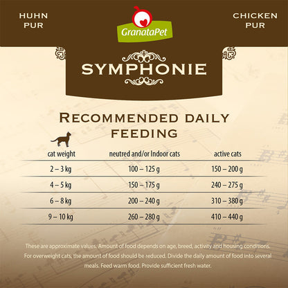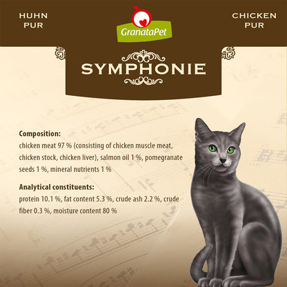 The high meat content, comprising lean meat and liver, provides a protein-rich diet. Tender fillet chunks, delicately prepared during packaging, encapsulate essential vitamins, nutrients, and essential fatty acids. The natural jelly, a delightful byproduct of GRANATAPET's meticulous cooking process, is a delectable treat that cats relish.