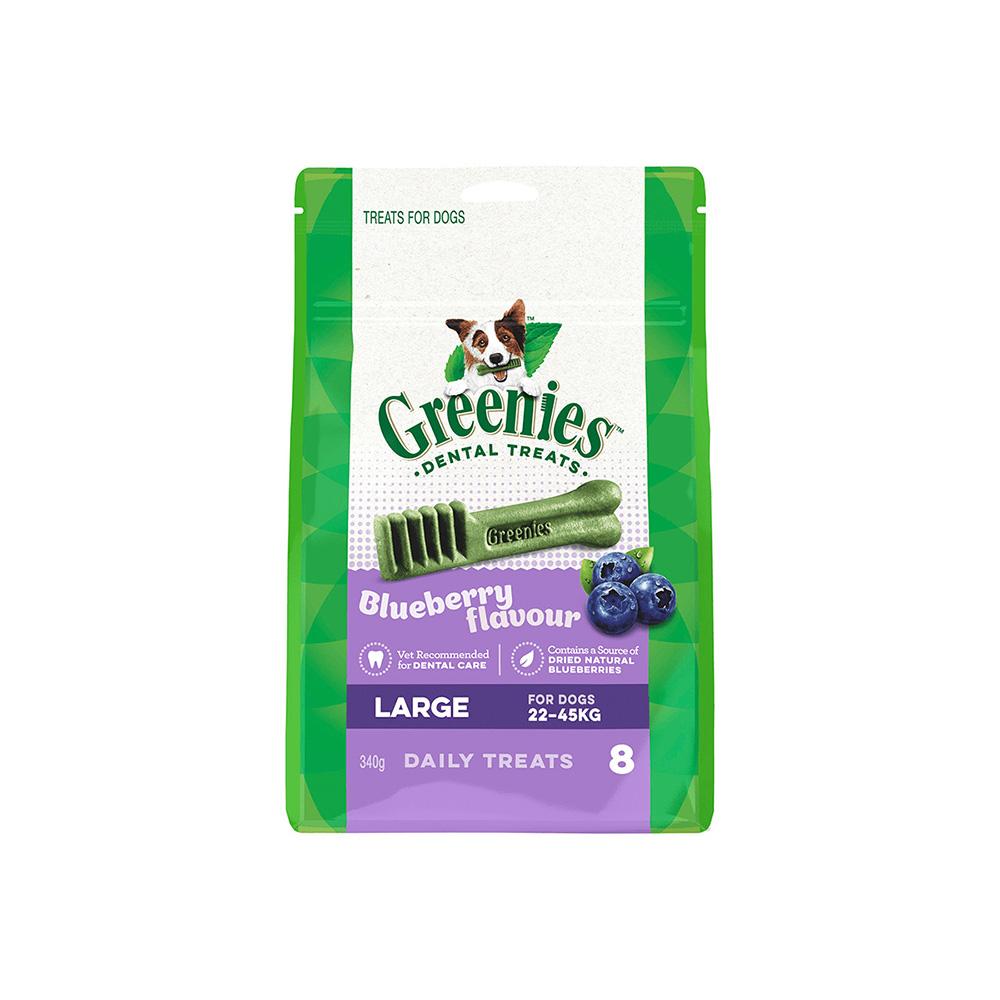 Feed one GREENIES™ Dental Chew per day. For dogs 50-100 lbs./22-45 kg. Not suitable for dogs less than 5 lbs, or dogs less than 6 months of age. Fresh drinking water should always be available.