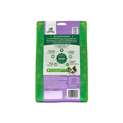 Feed one GREENIES™ Dental Chew per day. For dogs 25-50 lbs./11-22 lbs. Not suitable for dogs less than 5 lbs, or dogs less than 6 months of age. Fresh drinking water should always be available.