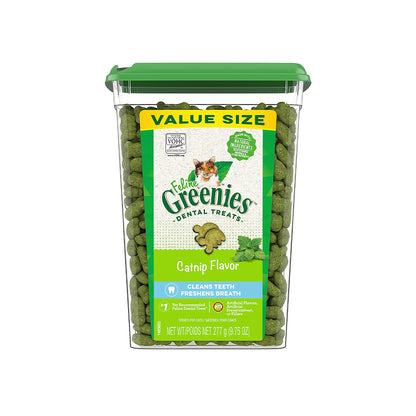 GREENIES Catnip Flavor Dental Cat Treats 277g is here to help combat tartar and keep your cat's teeth healthy and clean! Specially designed with a crunchy texture, these treats work wonders for your cat's oral and dental health with an irresistible Catnip flavour that ensures that your feline friend will eagerly enjoy their dental care routine.