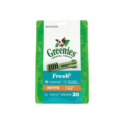 Greenies Dental Chews are a delicious treat proven to clean your dog’s teeth. Formulated with digestible and balanced ingredients, the treats have a chewy and flexible texture. Your dog’s teeth will sink up to the gums to maximise cleaning effectiveness. Available in 5 uniquely shaped sizes to suit different jaw shapes, Greenies Dental Chews is scientifically proven to reduce plaque and tartar build-up. Greenies is #1 vet recommended to maintain healthy gums and fresh breath. Fido will love them.