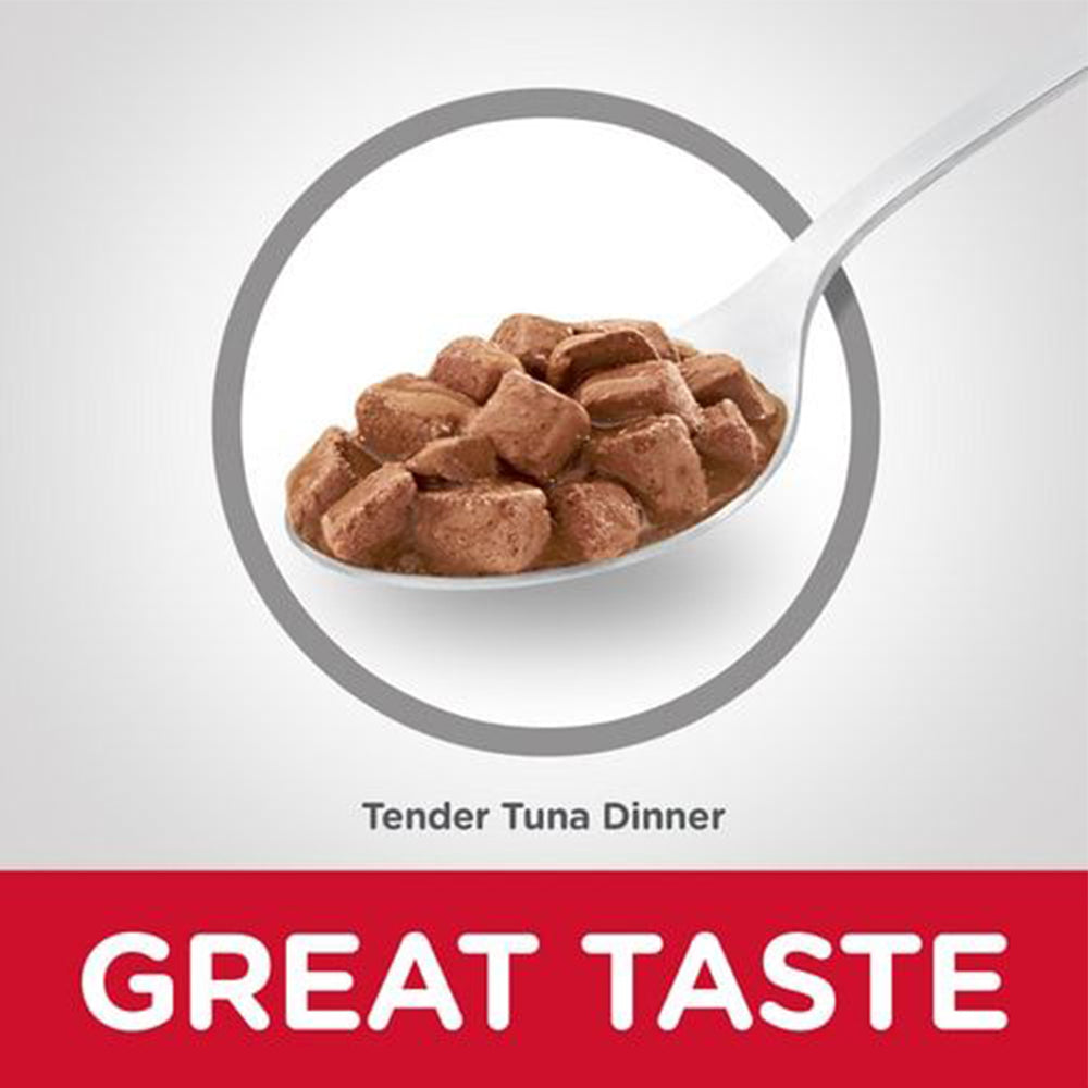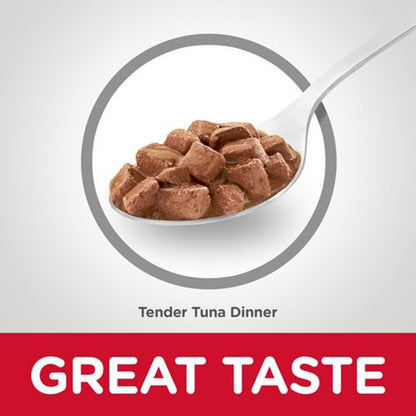 Hill's Science Diet Adult Tender Tuna Dinner a perfect balance between the delicious taste of tender baked tuna chunks in succulent gravy that cats love and the precise nutrition they need.