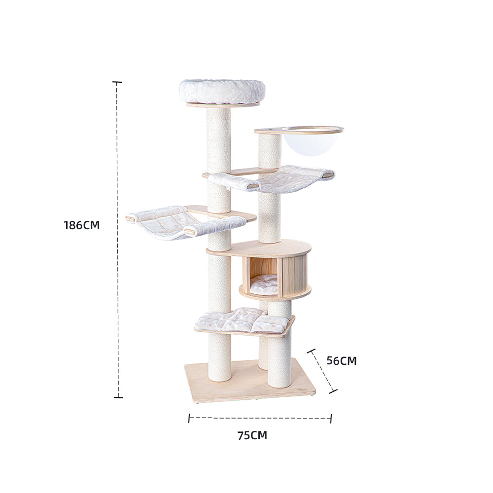 HONEYPOTCAT Classic Solid Wood Cat Tree has various combinations, allowing cats to play and rest at different levels and angles. Made from a combination of multi-layer solid wood and pine, it ensures stability and won’t easily deform while remaining odor-free. The high-quality materials resist hair accumulation and insect attraction, creating a clean environment for cats. The surface protects their claws and is durable during scratching, ensuring safety and comfort, making it an ideal activity space for your feline friends.