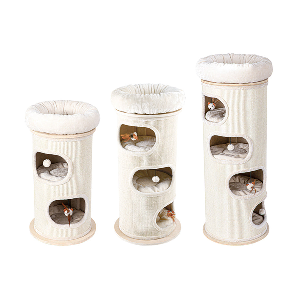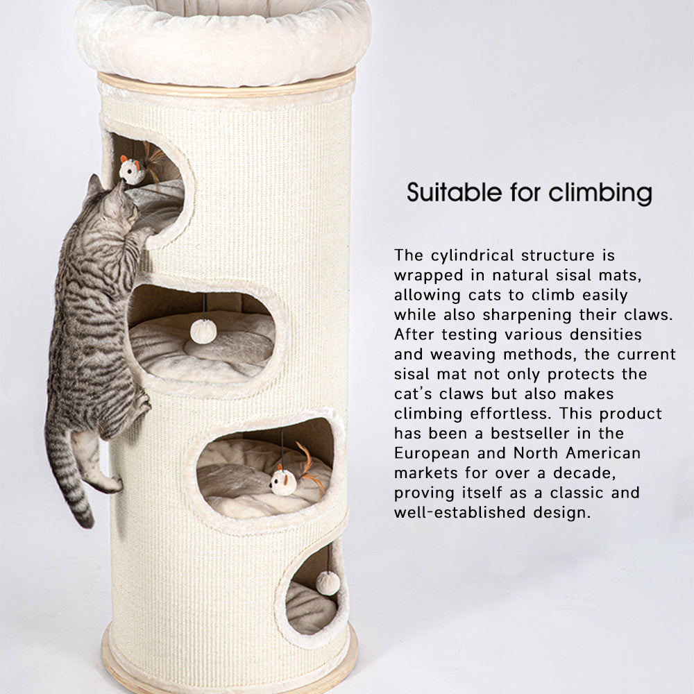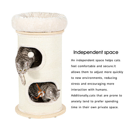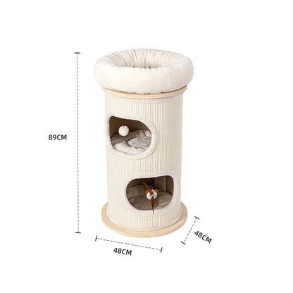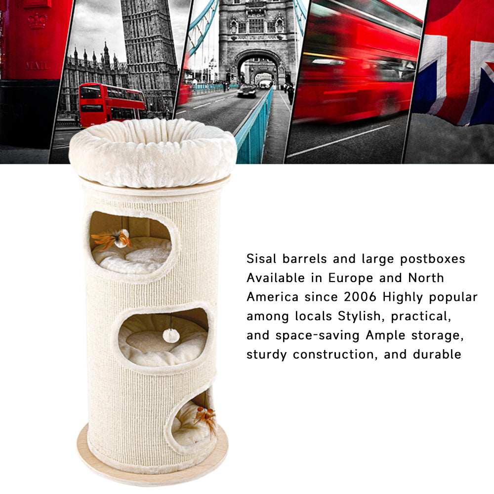 - The cylindrical design takes up little floor space while providing ample room, and the sturdy structure is suitable for multiple cats to play simultaneously.