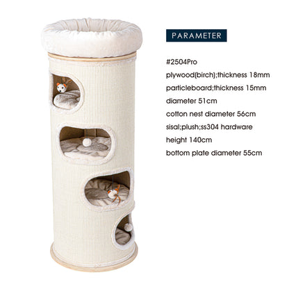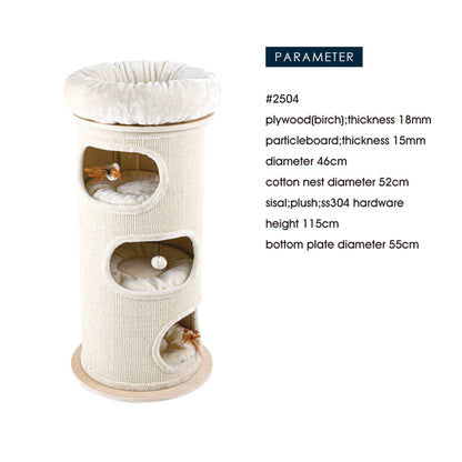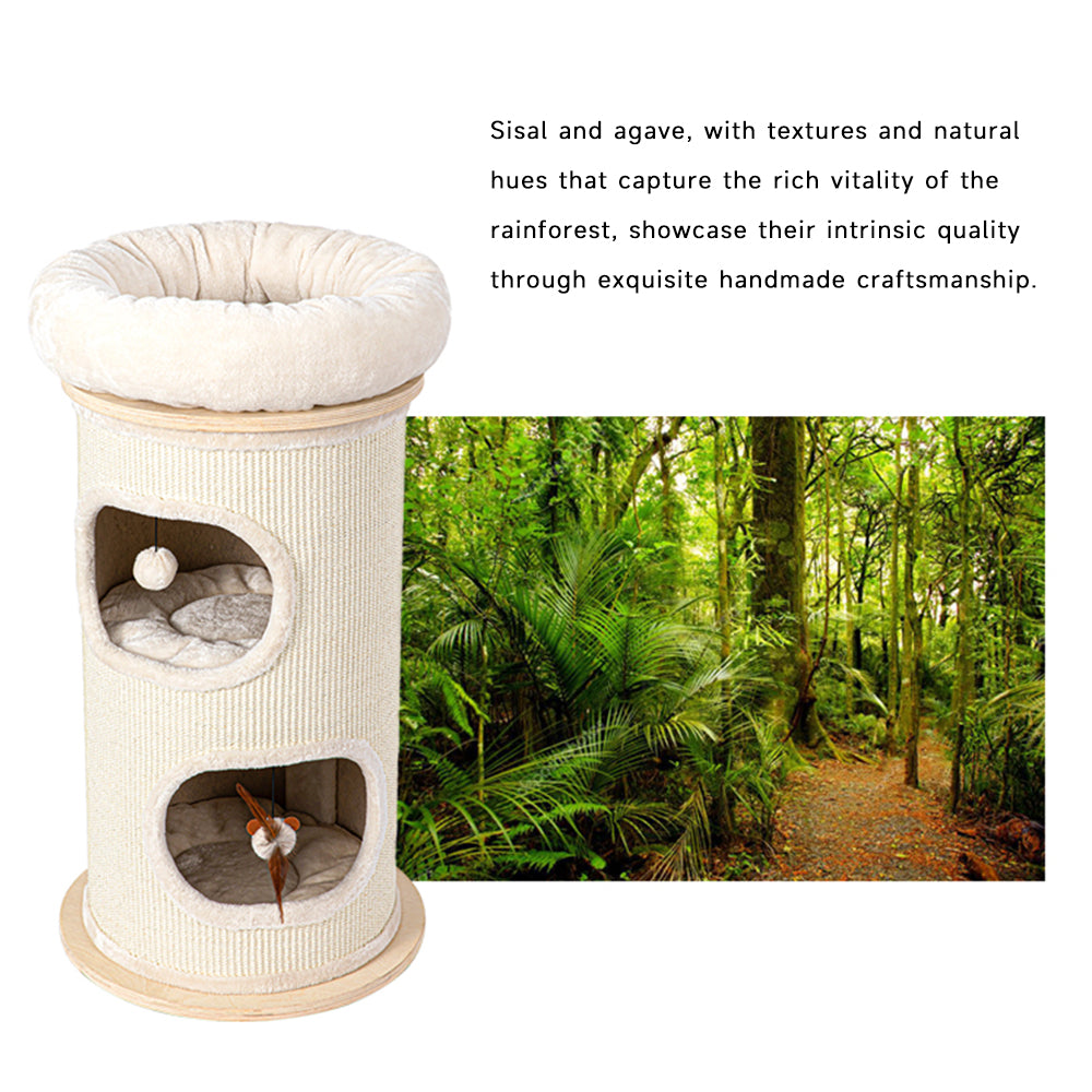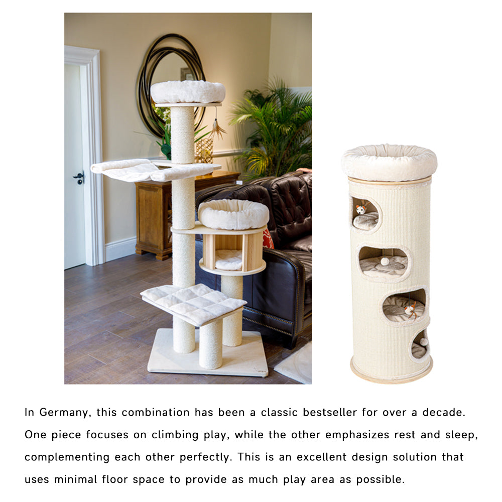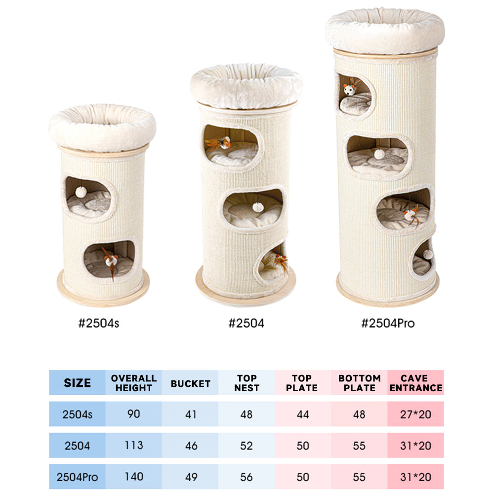 - The cylindrical design takes up little floor space while providing ample room, and the sturdy structure is suitable for multiple cats to play simultaneously.
