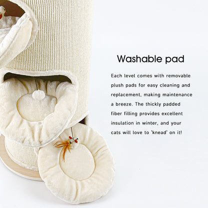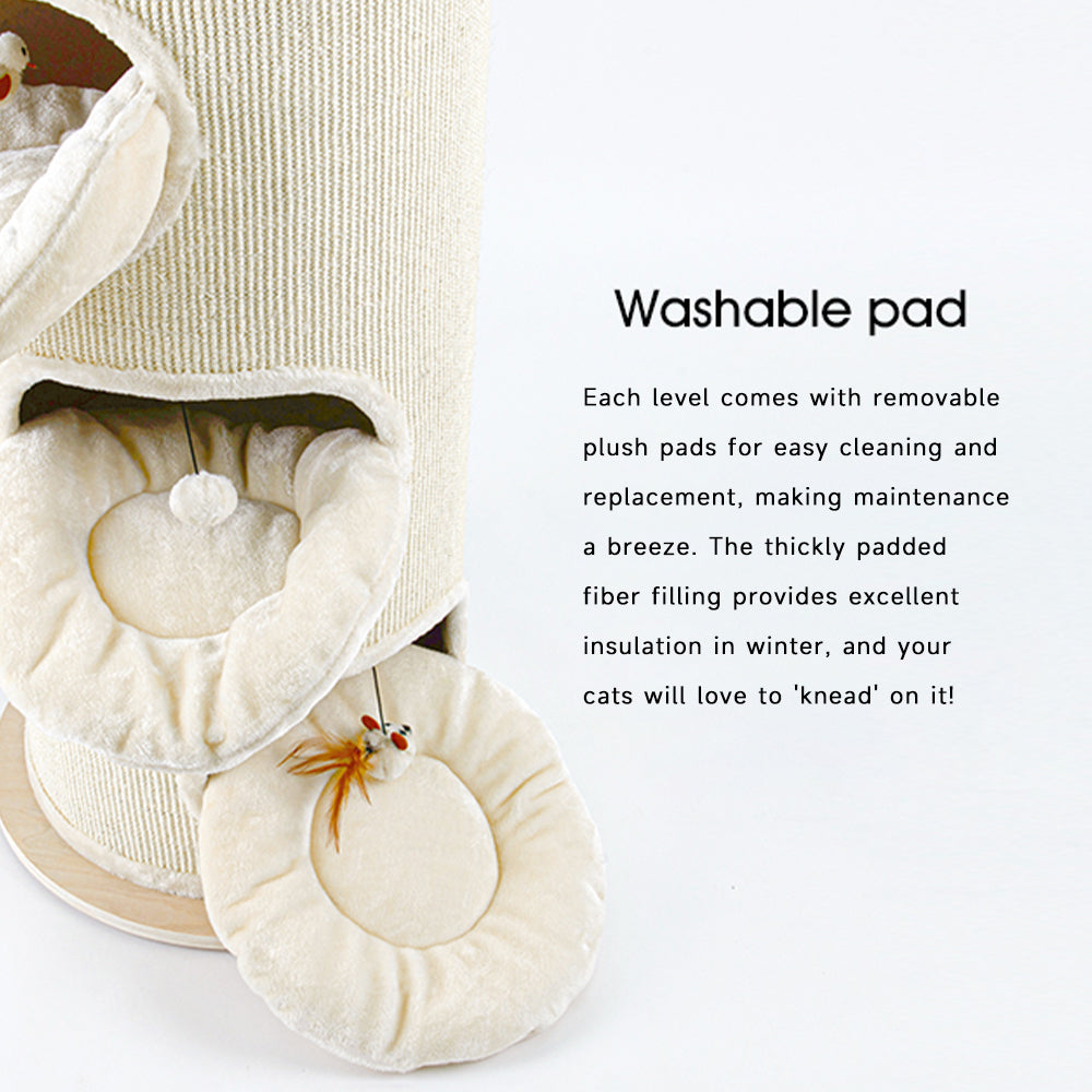 - Each level is equipped with removable plush cushions for easy cleaning and replacement, making maintenance a breeze.