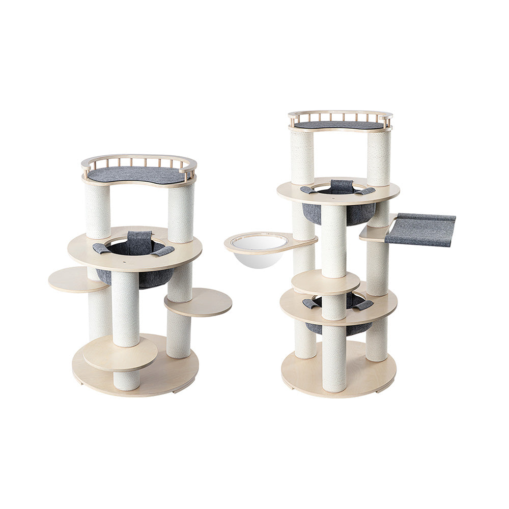 HONEYPOTCAT Harmony Wood Cat Tower is a large, multi-layer wood structure that combines a cat bed and cat tree into one. Its unique design and comprehensive functionality cater to various needs of cats. The multi-level layout provides ample space for cats to climb, rest, and play, making it suitable for cats of different sizes and personalities. With a design that is versatile for all seasons, it ensures that cats can enjoy a comfortable environment year-round. This makes it an ideal activity area in the home, allowing cats to express their natural behaviors and enjoy their time to the fullest.