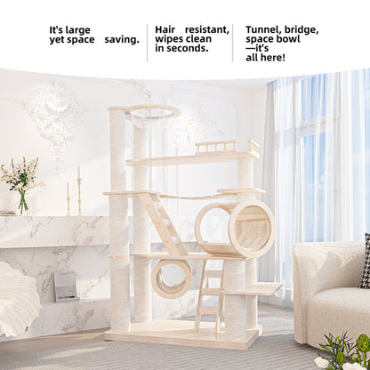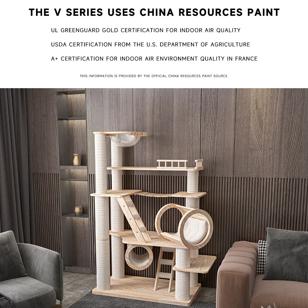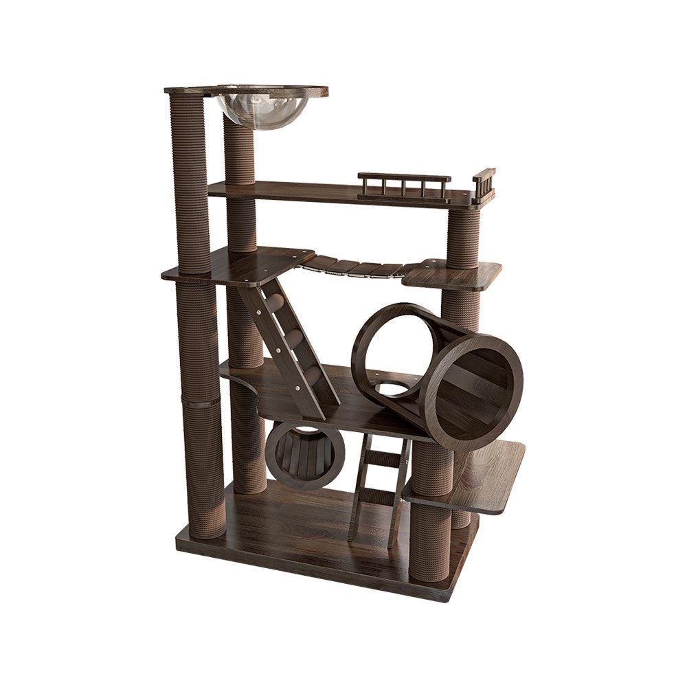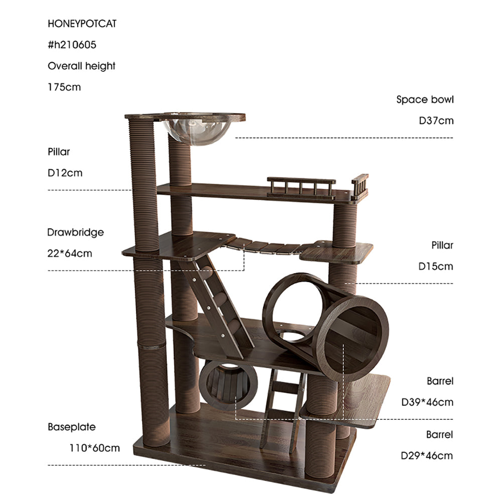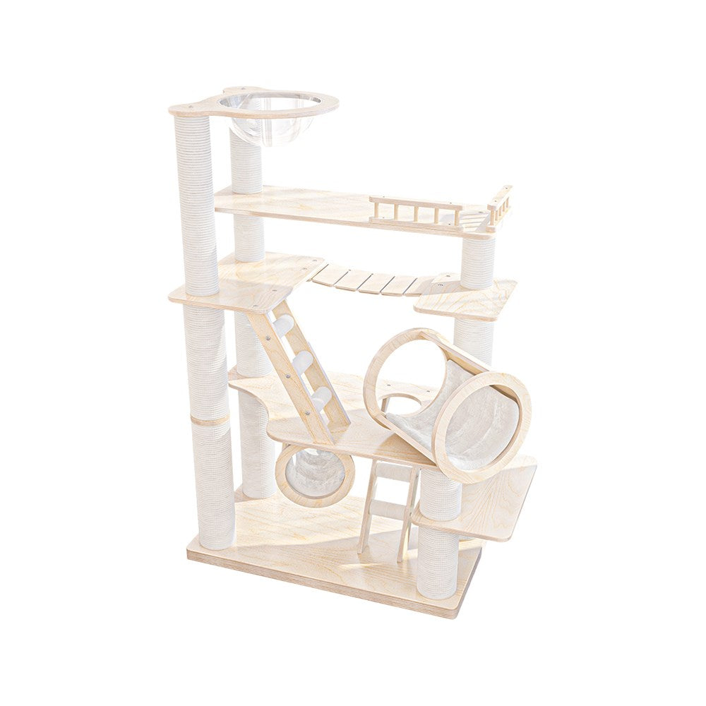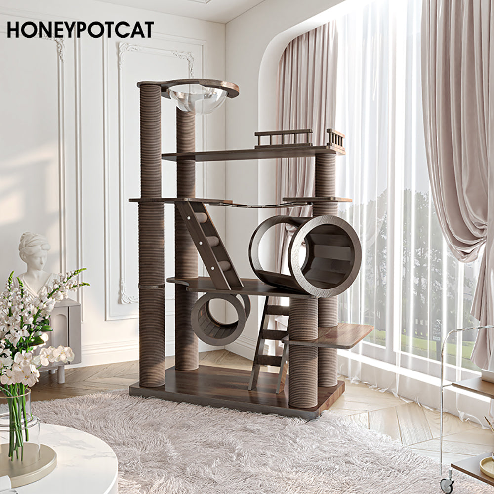 HONEYPOTCAT Knightsbridge Grandeur Cat Furniture boasts an integrated design that combines the elegance of a large, luxurious villa-style cat nest with the sleek look of a modern space capsule. Its compact structure is designed to save space, making it a perfect fit for any home. Installation is a breeze, you can easily set it up and create a wonderful play area for your cat in no time. The robust construction ensures stability, eliminating any wobbling, and provides a safe and cozy environment for your cats to climb, rest, and enjoy their playful moments.