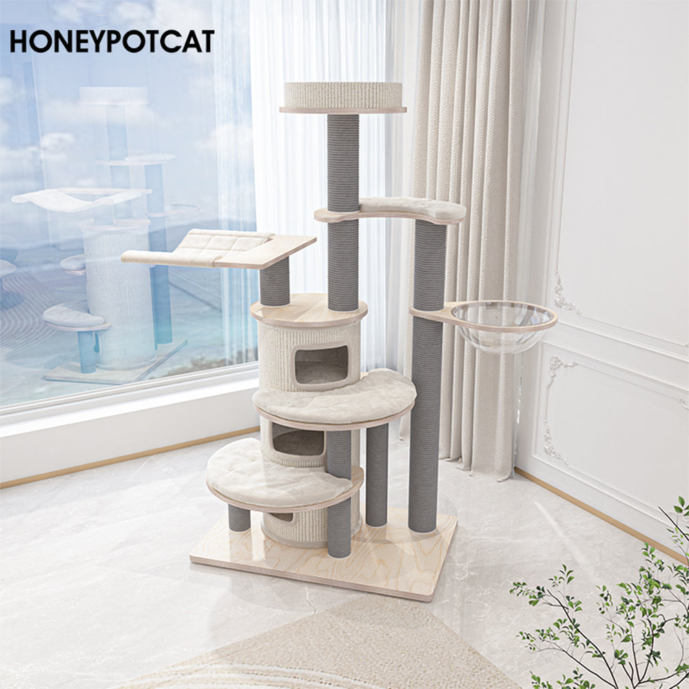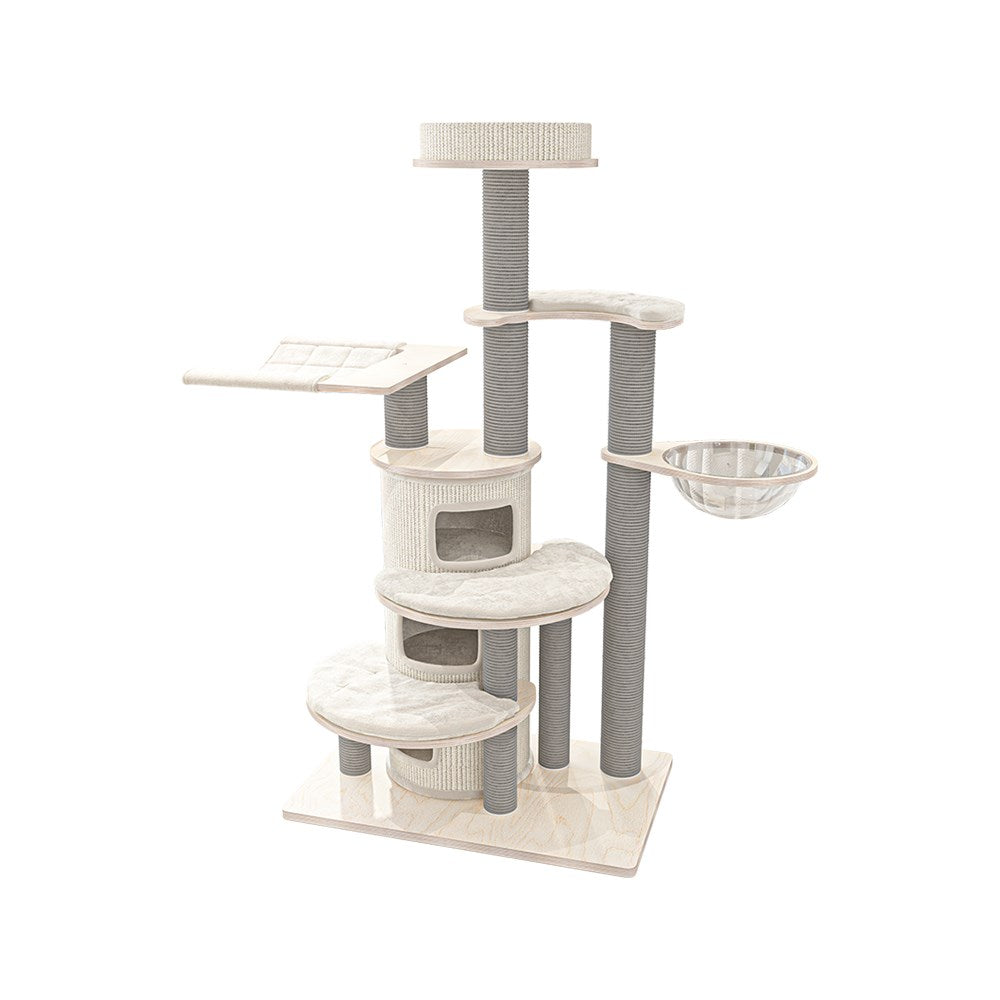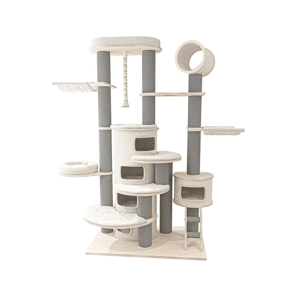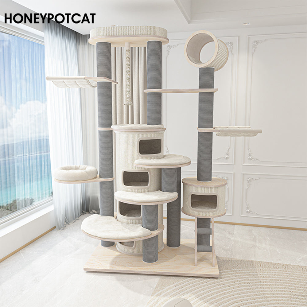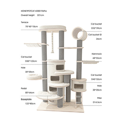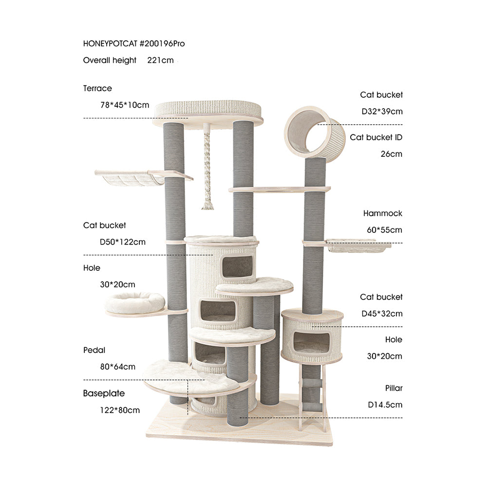HONEYPOTCAT Prestige Wood Cat Furniture is available in two sizes, 221cm and 179cm, offering a luxurious and expansive play area for your feline friend. Crafted from high-quality plywood, this cat tower features multiple levels, scratching posts, and cozy hideaways, providing endless opportunities for climbing, scratching, and resting. The stylish design and sturdy construction ensure durability, while the spacious layout is ideal for multi-cat households. Whether you choose the larger or smaller size, the Prestige Wood Cat Wonderland creates the perfect environment for your cats to play, exercise, and unwind in comfort.
