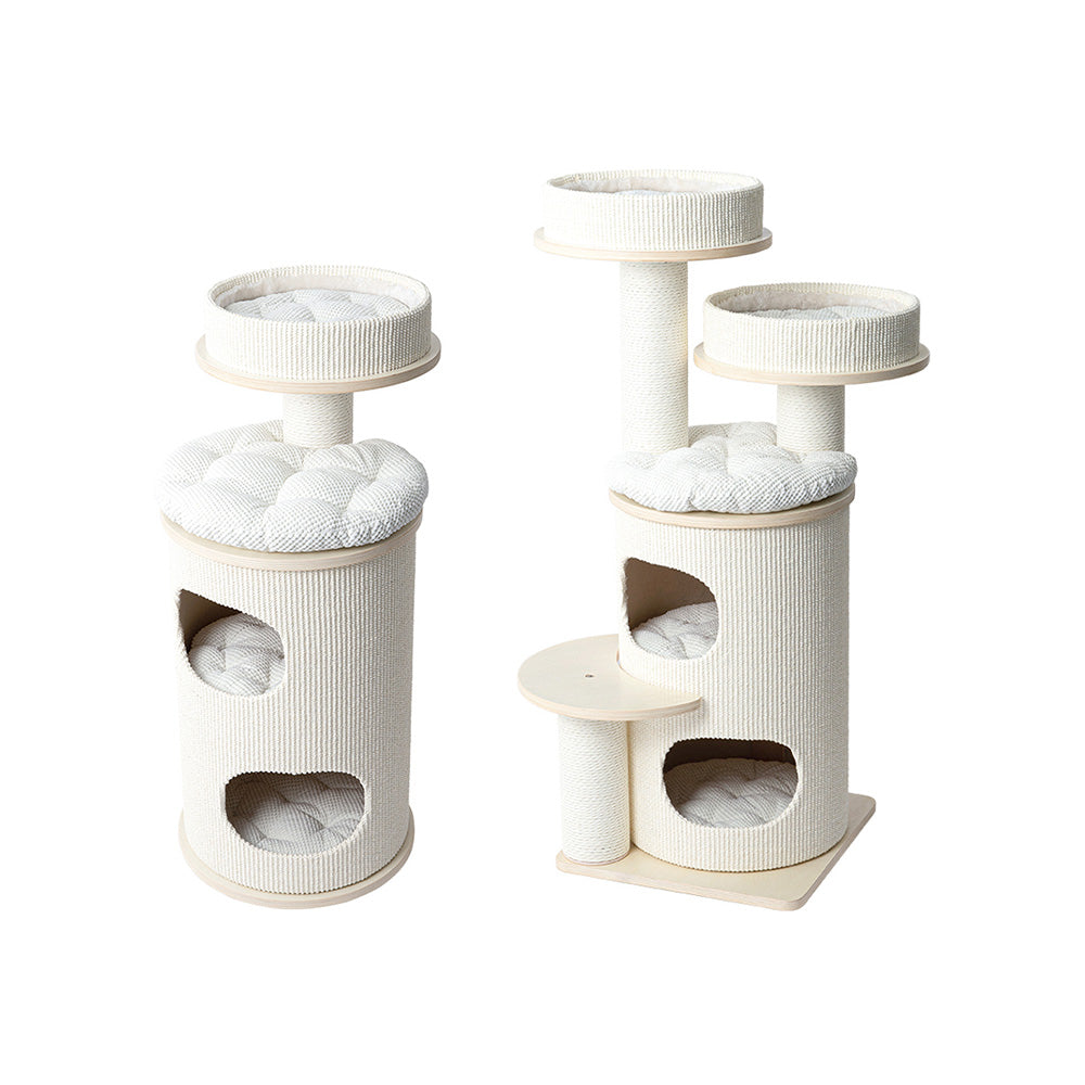 HONEYPOTCAT PURRING Multi-Level Sisal Barrel Cat Tower offers a versatile and engaging play structure for your feline companion. Designed with multiple levels and a durable sisal-covered barrel, it provides a perfect space for climbing, scratching, and lounging. The sisal material is ideal for satisfying your cat’s natural scratching instincts while keeping your furniture safe. Its compact design fits easily into any home, offering your cat both a functional play area and a comfortable resting space. With its sturdy construction and multiple features, the cat tower ensures hours of fun and relaxation for your pet.