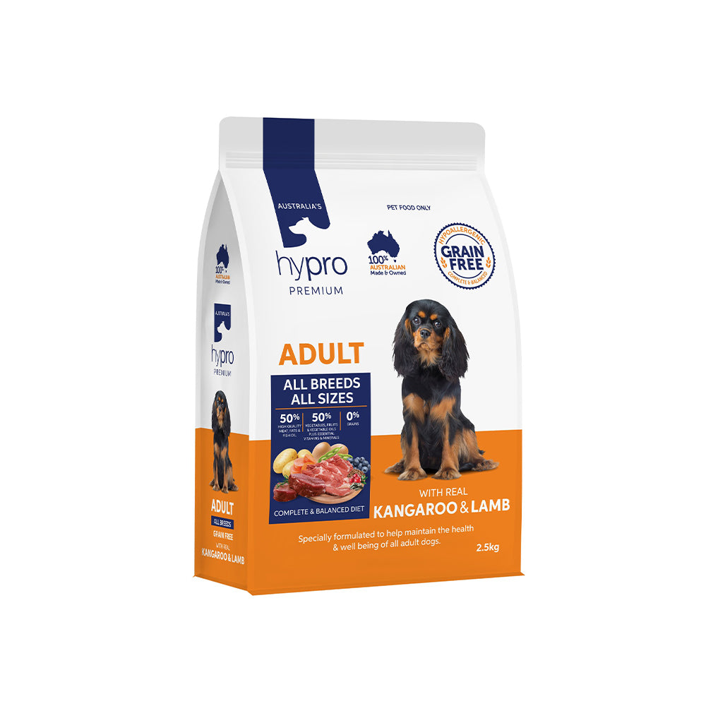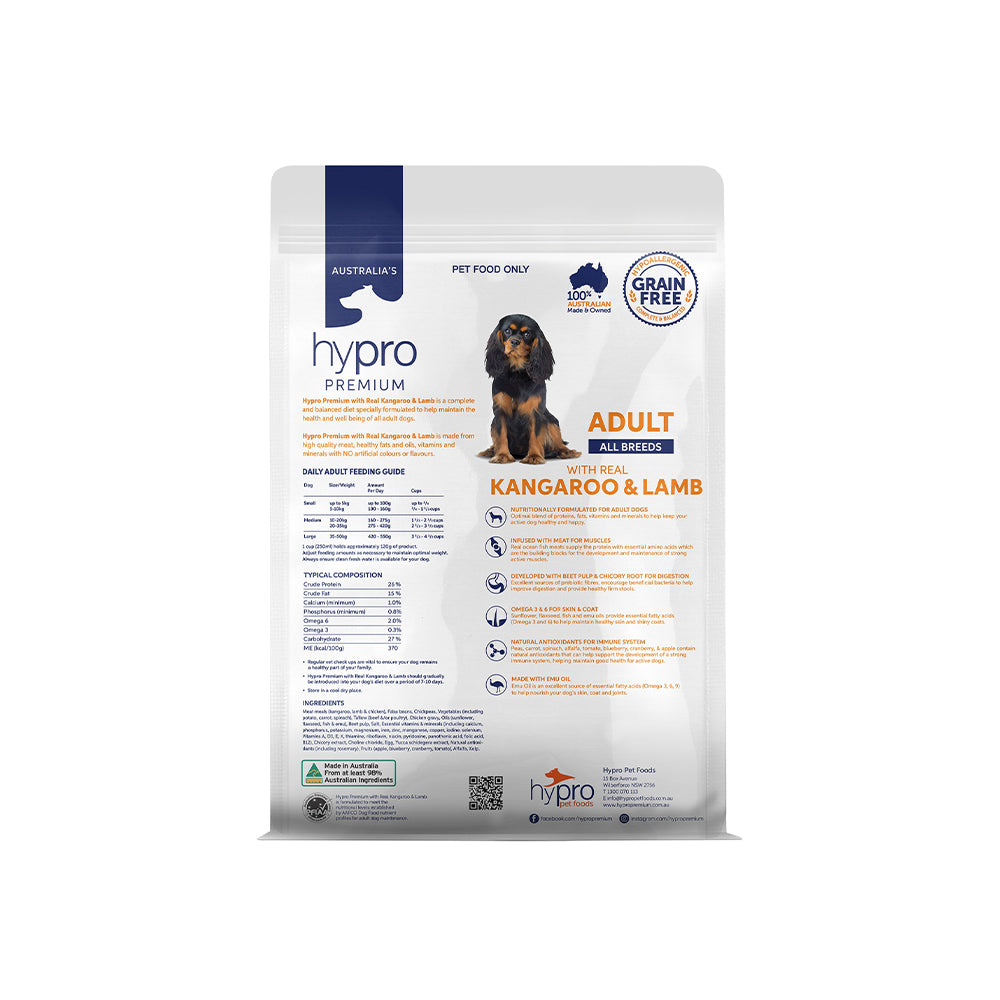 HYPRO Premium Grain Free Kangaroo & Lamb Adult Dry Dog Food provides an all-natural, wholesome, well balanced diet that is loaded with the finest Australian lean meats, essential fats, oils, vitamins and minerals.