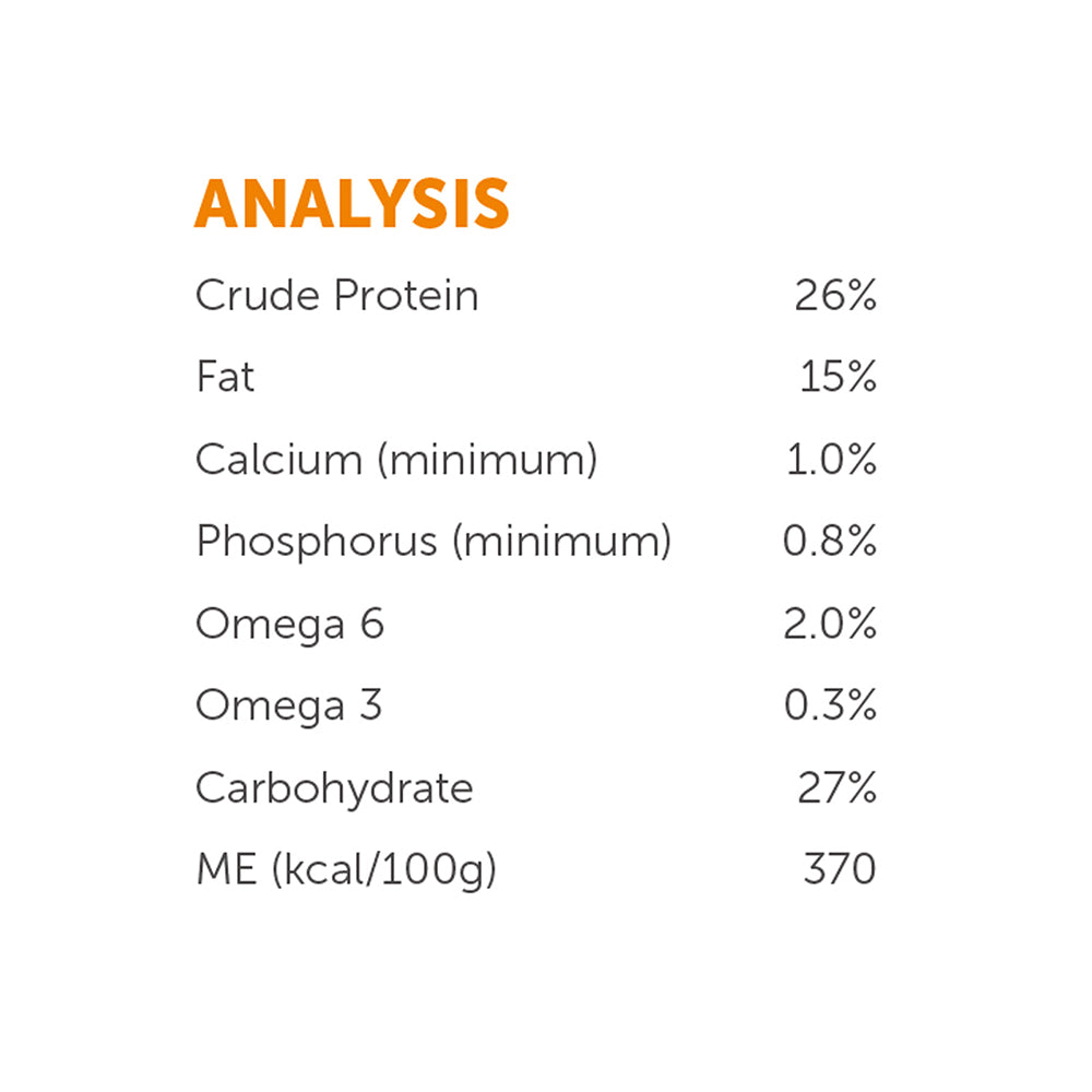Made from high quality meat, healthy fats and oils, vitamins and minerals with NO artificial colours or flavours.