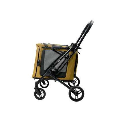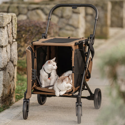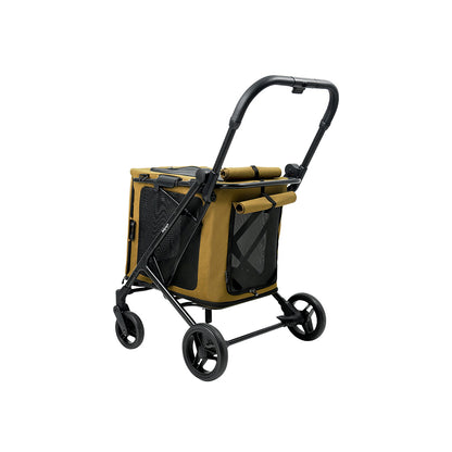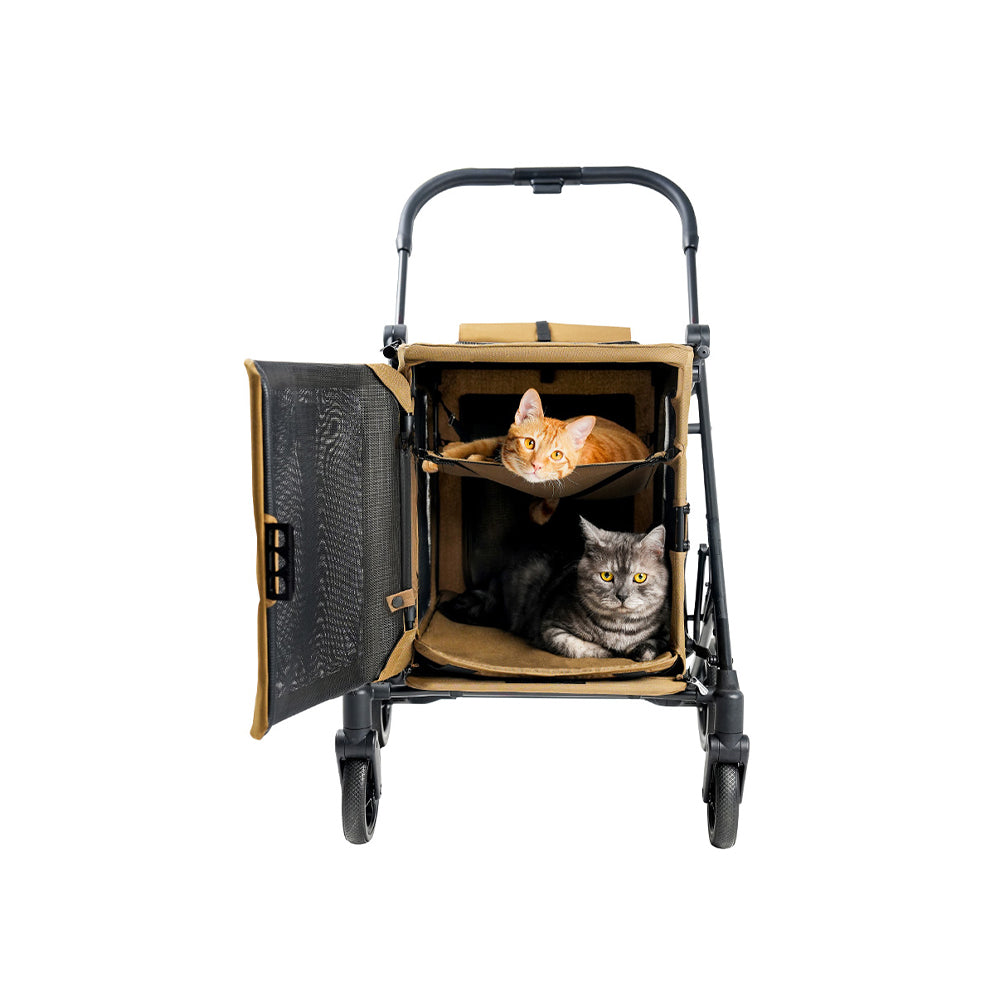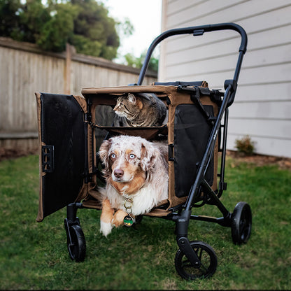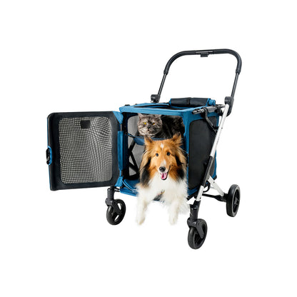 Enhance your pet outings with the BigBuddy Pet Stroller and Soft Crate combo, a 2-in-1 large pet stroller designed for versatility and convenience, especially for dogs with long legs. Ideal for vet visits, playdates, road trips, or weekend getaways, its quick-connect design allows easy detachment of the portable soft dog crate from the stroller, perfect for pet owners on the go. The patented latch design ensures smooth entry and exit, while the large soft dog crate offers ample relaxation space. With a built-in hammock for kittens and room for two cats, this tall dog stroller-crate guarantees a comfortable and stylish ride for all your furry companions.