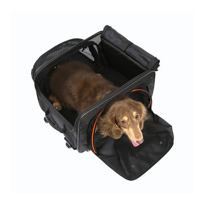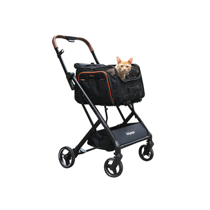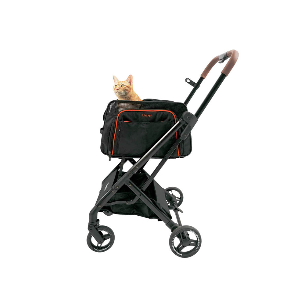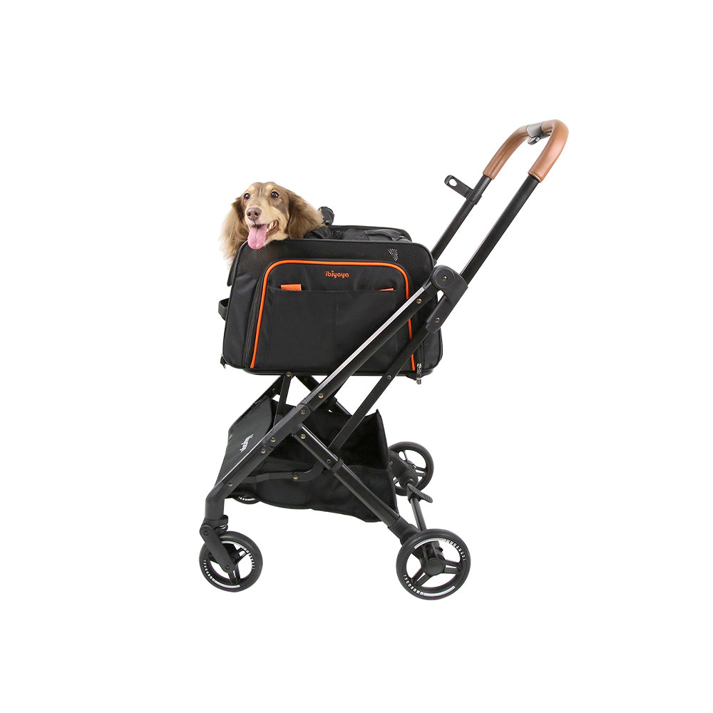 The ibiyaya JetPaw small pet stroller with removable carrier offers effortless travel with your pet, transforming into an expandable pet carrier, airline-approved pet backpack, pet handbag, front pack, car seat carrier, or rolling suitcase attachment. Built with a sturdy yet lightweight alloy frame, this compact pet stroller with detachable carrier ensures stability and comfort. It also includes a one-hand folding mechanism, collapsible design for easy storage, and a spacious top entry for user convenience.