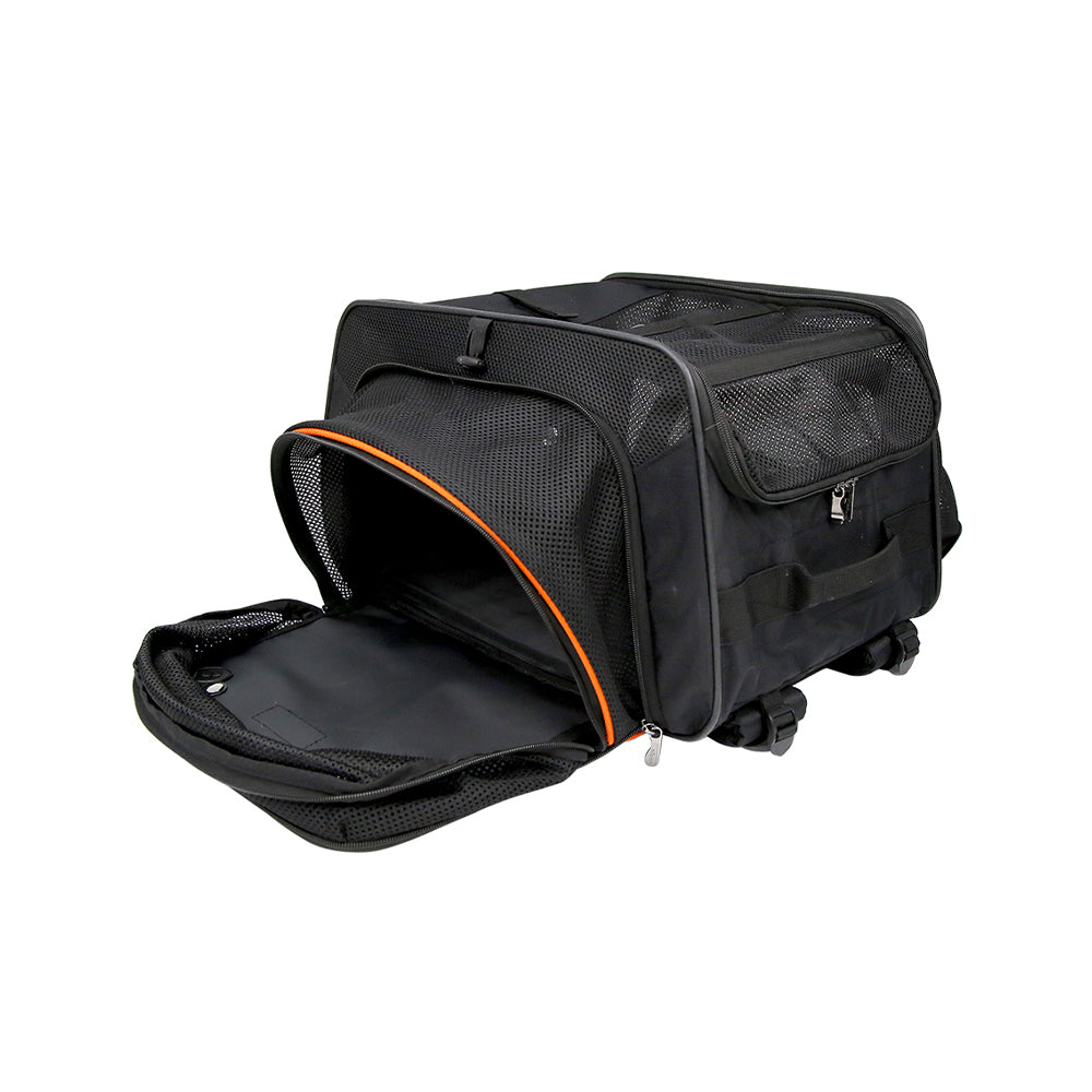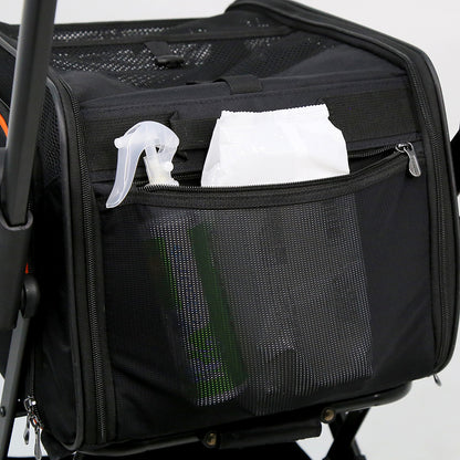 Foldable frame: This small pet stroller is airline-friendly, with the carrier fitting under the seat and the frame typically stowing in the overhead bin. However, space may be limited on smaller aircraft, and policies vary by airline. If overhead storage isn’t available, you can choose to check the folded frame as baggage for an additional fee. We recommend confirming carry-on compatibility with your airline before traveling.