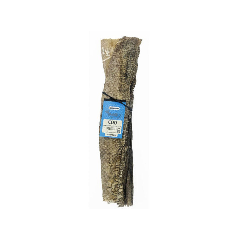 Our 100% natural and edible Icelandic Cod Short Skin Fish Sticks are single ingredient and contain no additives, preservatives or supplements. The Cod Short Skins are 8-10" long and weight an average of 0.2-oz each. They come only from the pure icy waters of Iceland and are line-caught daily and processed immediately. Not only are they delicious for your dog, they reduce tartar and plaque build-up for healthier gums and teeth. They are also a great natural source of Omega-3 & Omega-6 fatty acids, promoting healthy skin and coat for your pet. With just one ingredient, these tasty and healthy treats are perfect for dogs with protein sensitivities. Our natural and edible fish products offer peace of mind, as they are cleaned and air-dried within FDA, USDA, EU, and MAST standards and regulations. Because Iceland almost never gets warm, our fish always remain cold after being caught. As a result, they have less smell than other fish treats in the market.