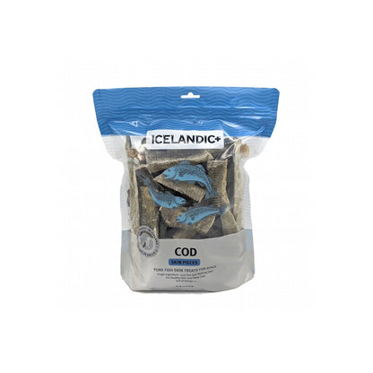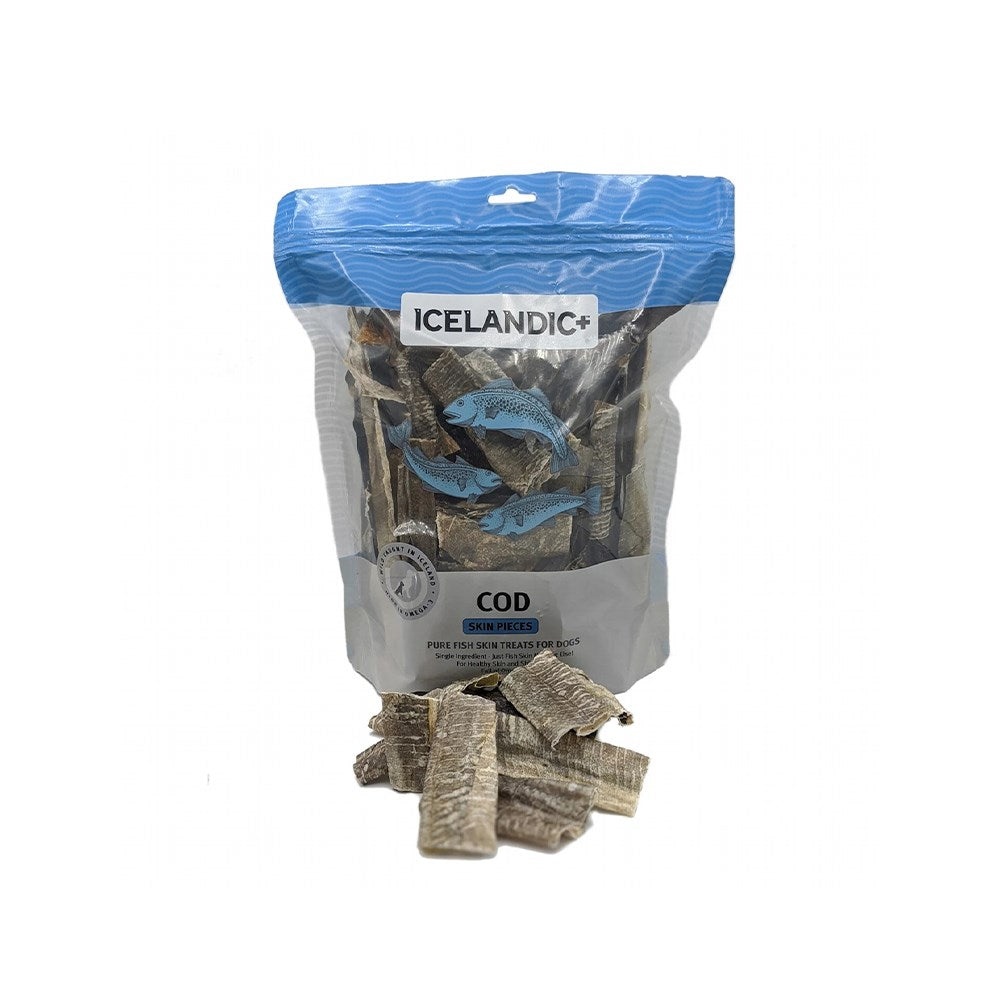 Icelandic+ Cod Skin Pieces Our 100% natural and edible Icelandic fish pieces are single ingredients and contain no additives, preservatives or supplements. They come only from the pure icy waters of Iceland. Not only are they delicious for your dog, but they also reduce tartar and plaque build-up for healthier gums and teeth. They are also a great natural source of Omega-3 & Omega-6 fatty acids promoting healthy skin and coats for your pet. These tasty treats are perfect for dogs with protein sensitivities.