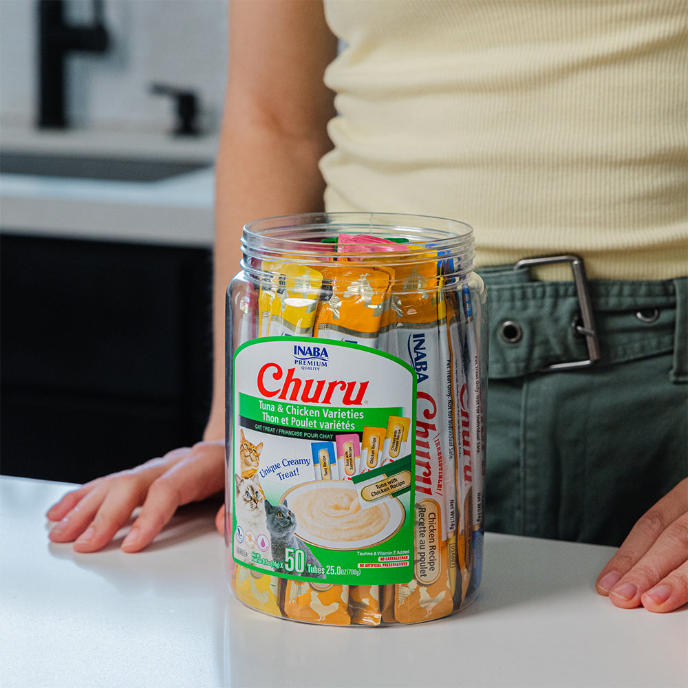 - All Churu treats are made with yummy high-quality ingredients including farm-raised chicken and/or natural, wild-caught tuna.