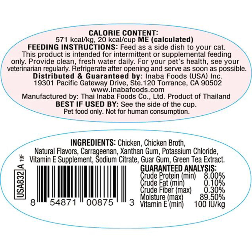 Chicken, Guar Gum, Xanthan Gum, Green Tea Powder, Vitamin E, Carrageenan, Potassium Chloride, Sodium Citrate, Natural Chicken Flavored Broth, Natural Flavors