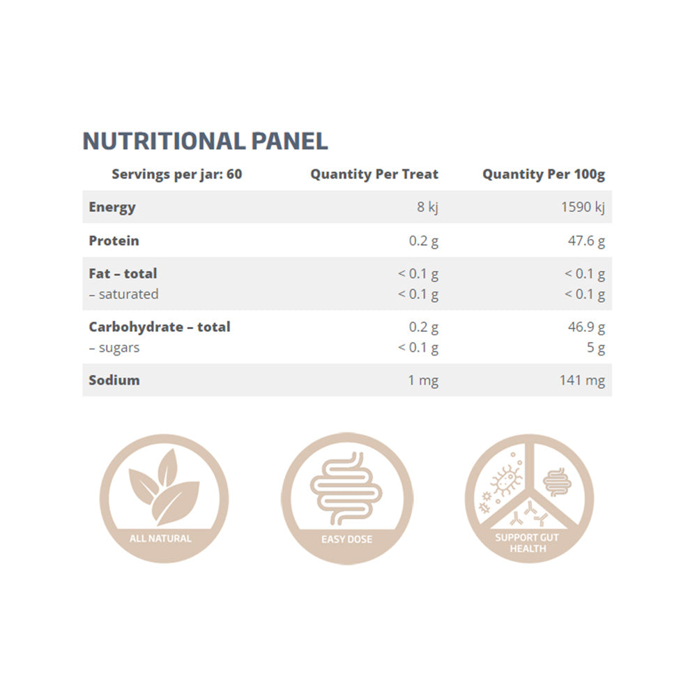 Looking to keep your pet healthy and active for as long as possible? IPROMEA Pet Parade Collagen Pet Supplement 60g is a great way to start! This supplement is packed with anti-inflammatory and anti-microbial properties, as well as amino acids and good bacteria, to help promote optimal bone, joint, hair, nail and skin health in your pet. So start your pre-emptive plan of attack today and ward off problems later in life!