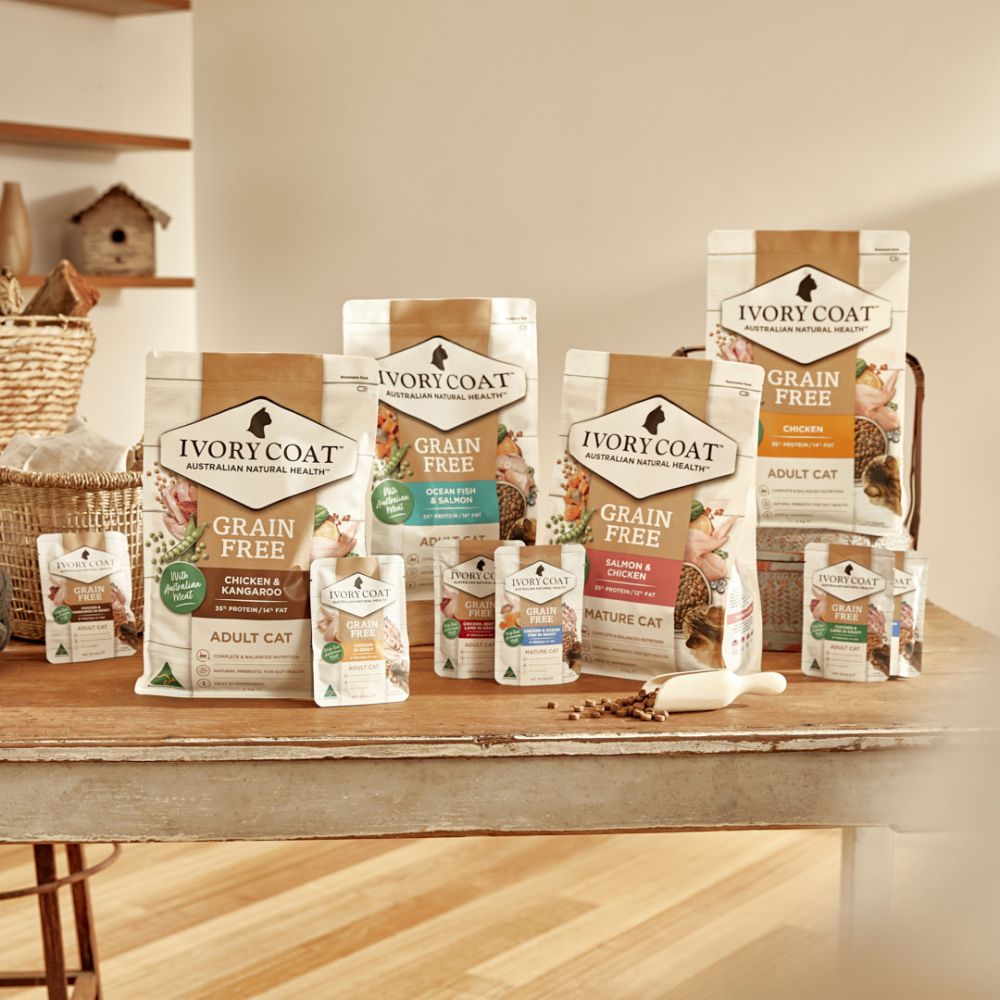 When you choose Ivory Coat for your cat, you’re choosing quality, Australian Made products with selected natural ingredients such as Australian Meat as the #1 ingredient across the range, and all products are formulated with no added artificial colours or flavours. Ivory Coat cat food is a specifically formulated grain free meal to give your cat their daily complete nutrition, keeping them happy and healthy for life.