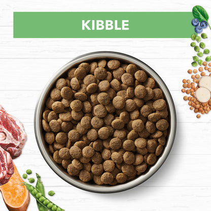 Lamb Meal, Peas, Tapioca, Chicken Fat (Preserved With Mixed Tocopherols), Green Beans, Tomato Pomace, Coconut Oil, Pea Fibre, Ground Flaxseed, Salmon Oil, Sweet Potatoes, Carrots, Kale, Broccoli, Spinach, Parsley, Apples, Blueberries, Methionine, Vitamins A, B1, B2, B5, B6, B12, D3, E, Beta-carotene, Niacin, D-calcium Pantothenate, Biotin, Folic Acid, Magnesium, Iron, Zinc, Manganese, Copper, Natural Prebiotic, Rosemary Extract & Green Tea Extract. This is a naturally preserved product.
