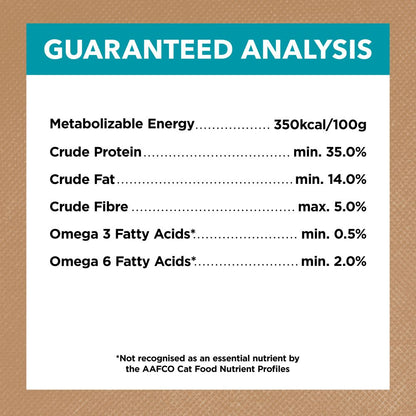 With carefully selected ingredients to provide natural sources of grain free complex carbohydrates and fibre to help support a healthy gut. A natural superfood blend (including Tomato, Apple, Carrot, Pumpkin, Kale, Blueberries, Spinach & Cranberries) is added as a source of antioxidants, as well as Omega 3 & 6 to help support healthy skin & coat with natural pre-biotics included to support healthy digestion, and essential vitamins and minerals ensure your cat is provided with their complete daily nutrition.