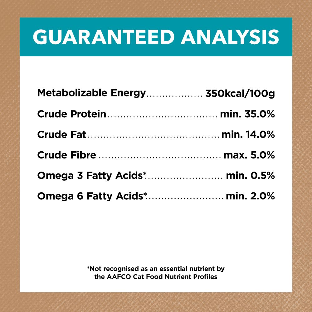 With carefully selected ingredients to provide natural sources of grain free complex carbohydrates and fibre to help support a healthy gut. A natural superfood blend (including Tomato, Apple, Carrot, Pumpkin, Kale, Blueberries, Spinach & Cranberries) is added as a source of antioxidants, as well as Omega 3 & 6 to help support healthy skin & coat with natural pre-biotics included to support healthy digestion, and essential vitamins and minerals ensure your cat is provided with their complete daily nutrition.