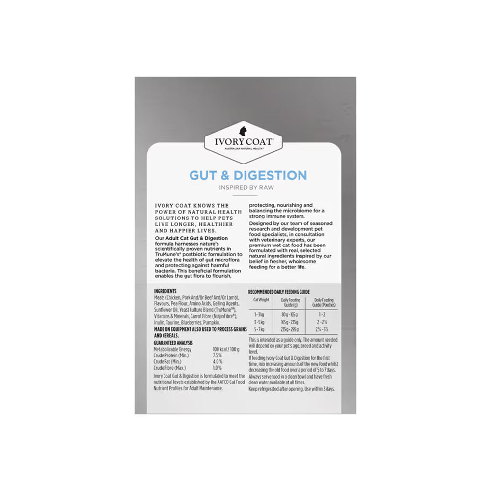 Meats (Chicken, Pork And/Or Beef And/Or Lamb), Flavours, Pea Flour, Amino Acids, Gelling Agents, Sunflower Oil, Yeast Culture Blend (TruMuneTM), Vitamins & Minerals, Carrot Fibre (NinjinFibre®), Inulin, Taurine, Blueberries, Pumpkin