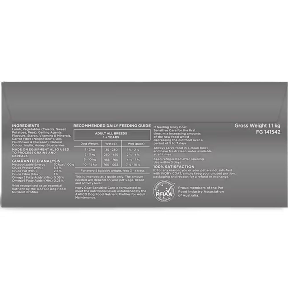 Lamb, Vegetables, Gelling Agents, Flavours, Starch, Vitamins & Minerals, Carrot Fibre (NinjinFibre®), Oils, Natural Colour, Inulin, Honey, Blueberries.