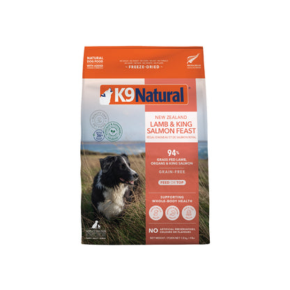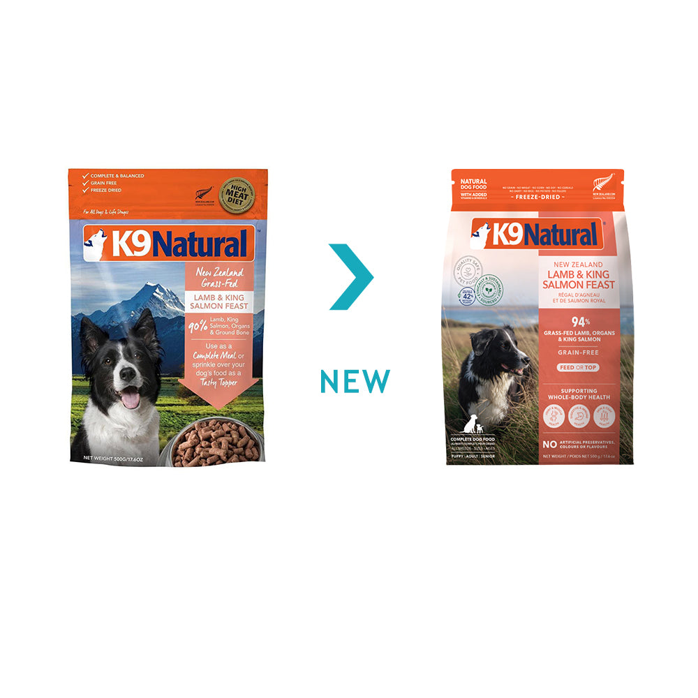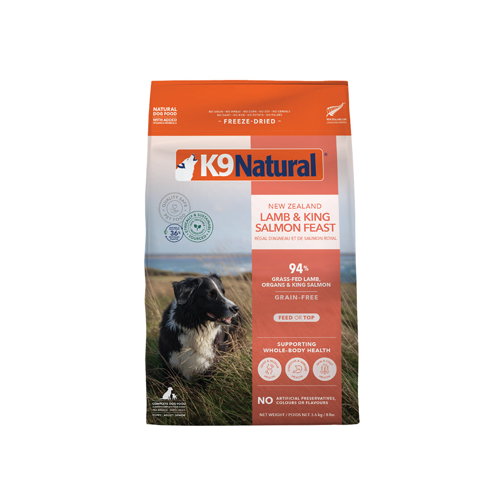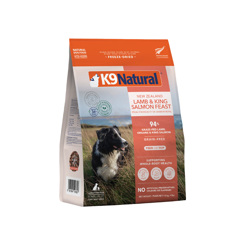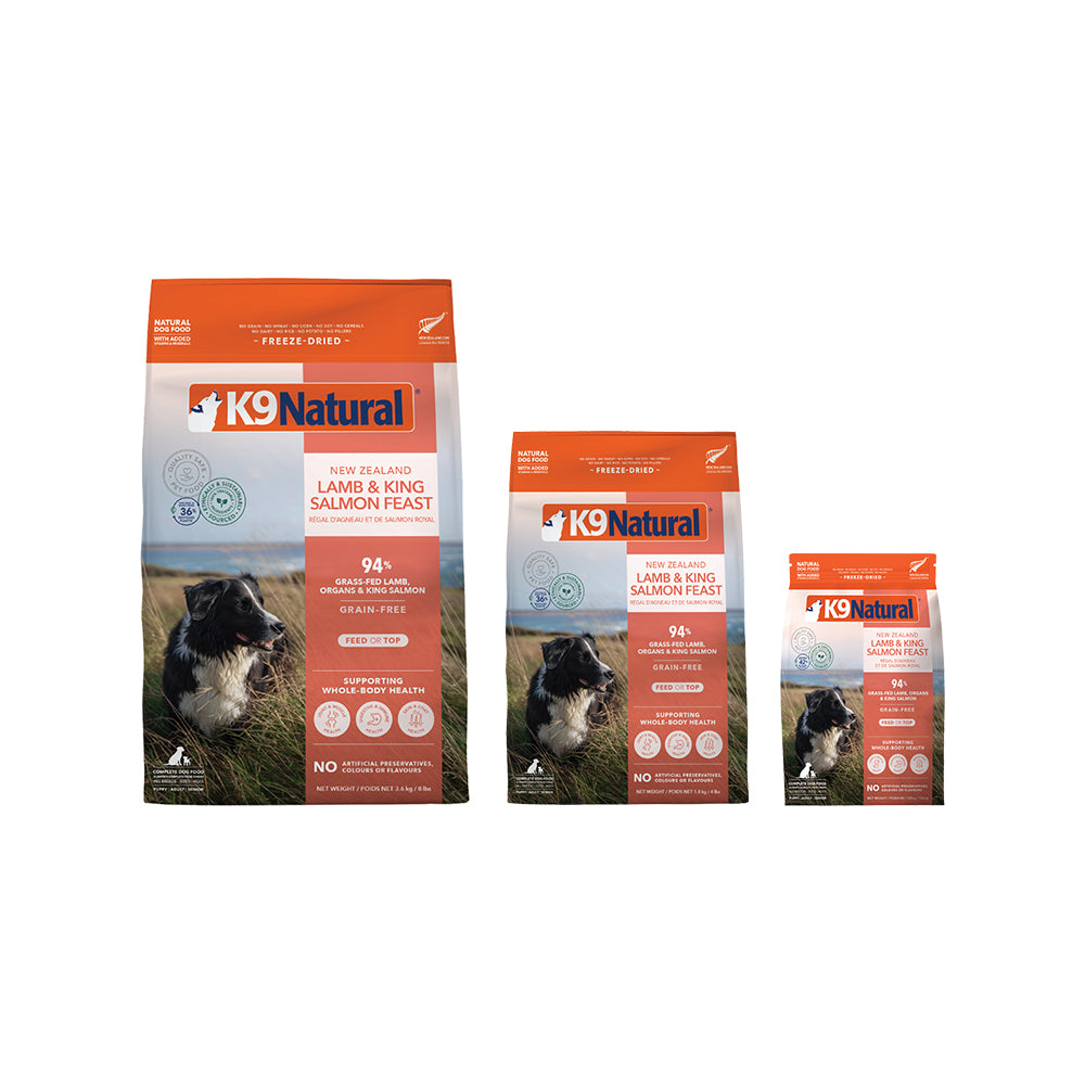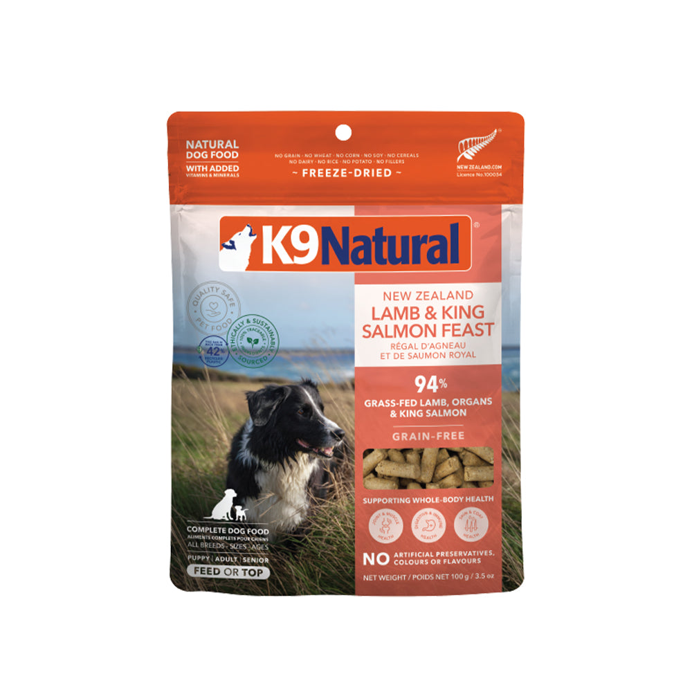 K9 NATURAL Lamb & King Salmon Freeze Dried Dog Food 500g is an innovative, high-quality all-natural product that uses human-grade ingredients to create an exciting meal your dog is sure to love! Made with healthy meats and no grains or fillers, they experience the purest diet that only contains the tastiest of ingredients. Freeze-dried means that they can enjoy a complete and balanced meal with optimal nutrients in order to keep them active, happy, and living their best lives!
