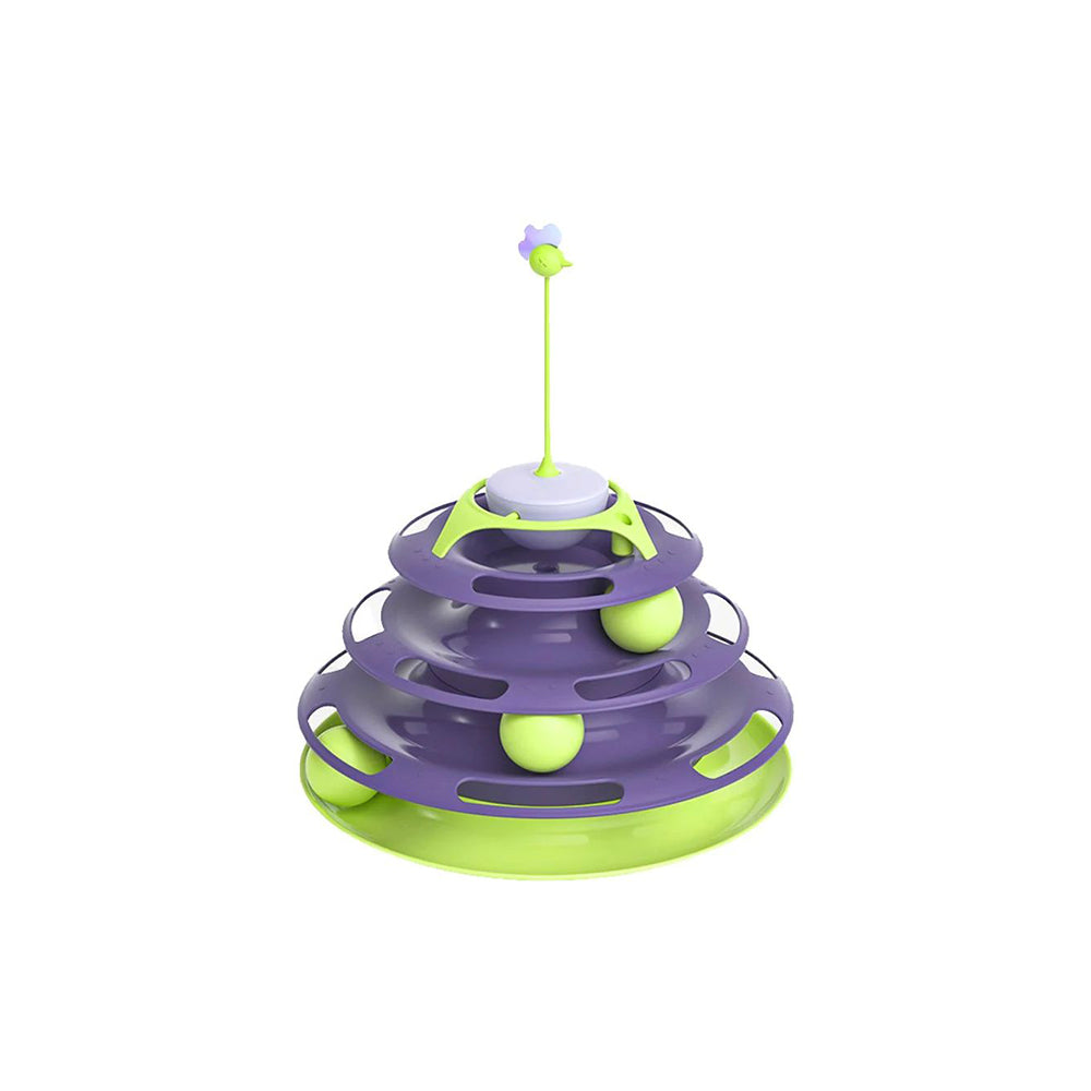 KARA PET Purple Cat Turntable Toy With Balls is designed with two levels of tracks for interactive playtime for your cats. 1st level comes with three spinning moving balls, while the second level offers two and a flexible pole in the middle with a dangling feather toy at the tip. This brightly-coloured toy helps to keep your furry friends entertained and active for hours, ensuring they don't experience any boredom or depression during their downtime.