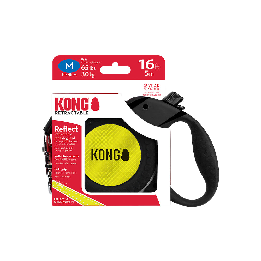 KONG Reflect Retractable Leashes are perfect for everyday use around your favorite walking trails, the KONG Terrain features a soft grip handle and offers 16 ft / 5 m of freedom on a wide, color coordinated webbing with reflective stitching.