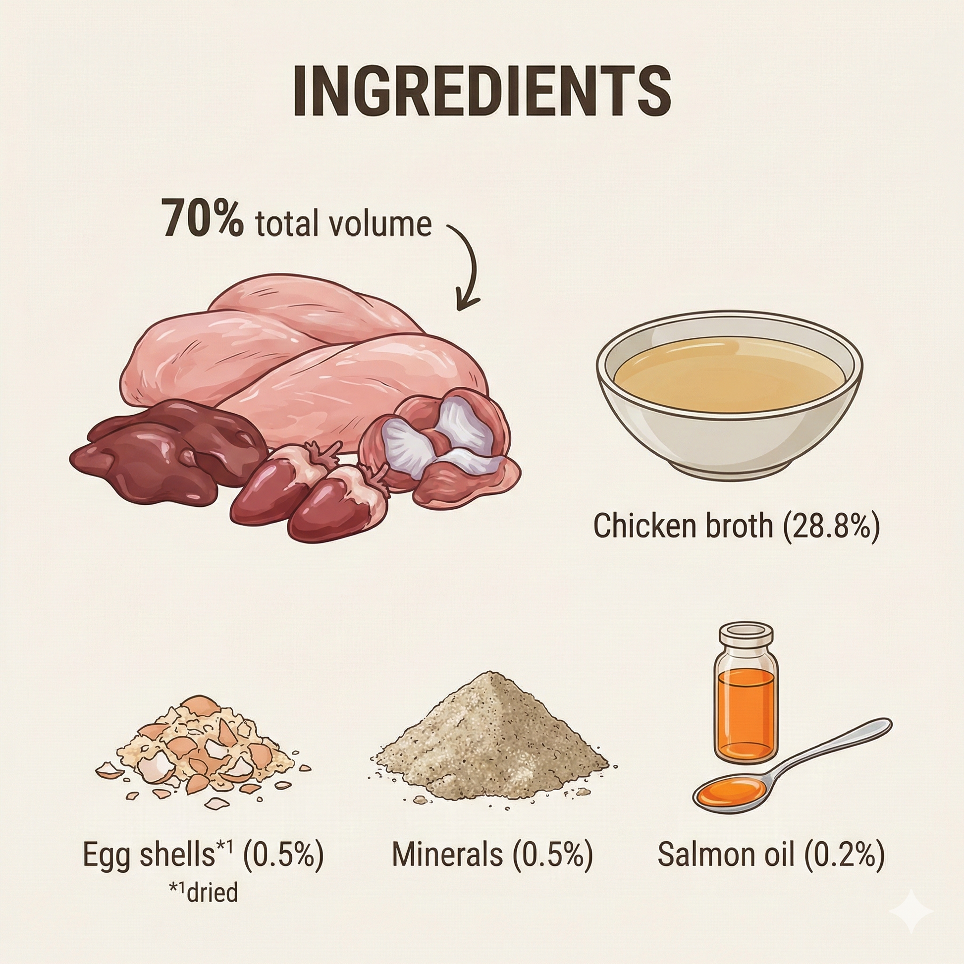 - 70% lean chicken meat & offal