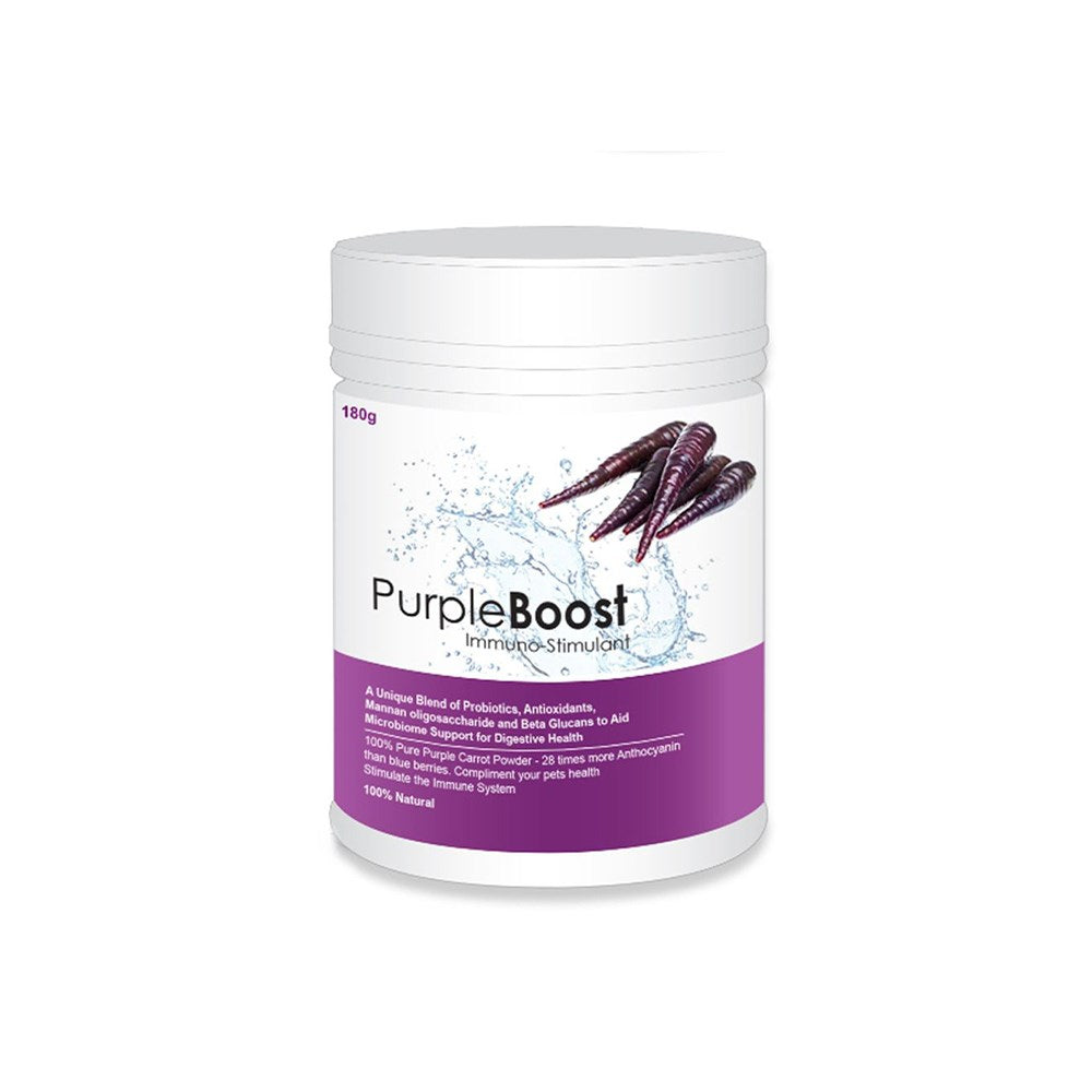 Purple Boost aids in strengthening capillaries, protecting eyesight, moderating liver histology, and enhancing factors like enzymes, glucose tolerance, and fat pad regulation. It actively contributes to disease prevention, boosts energy levels, and maintains overall health.