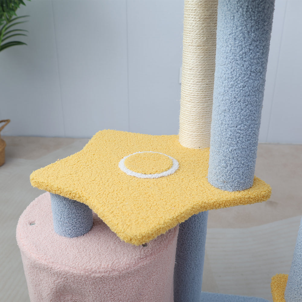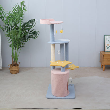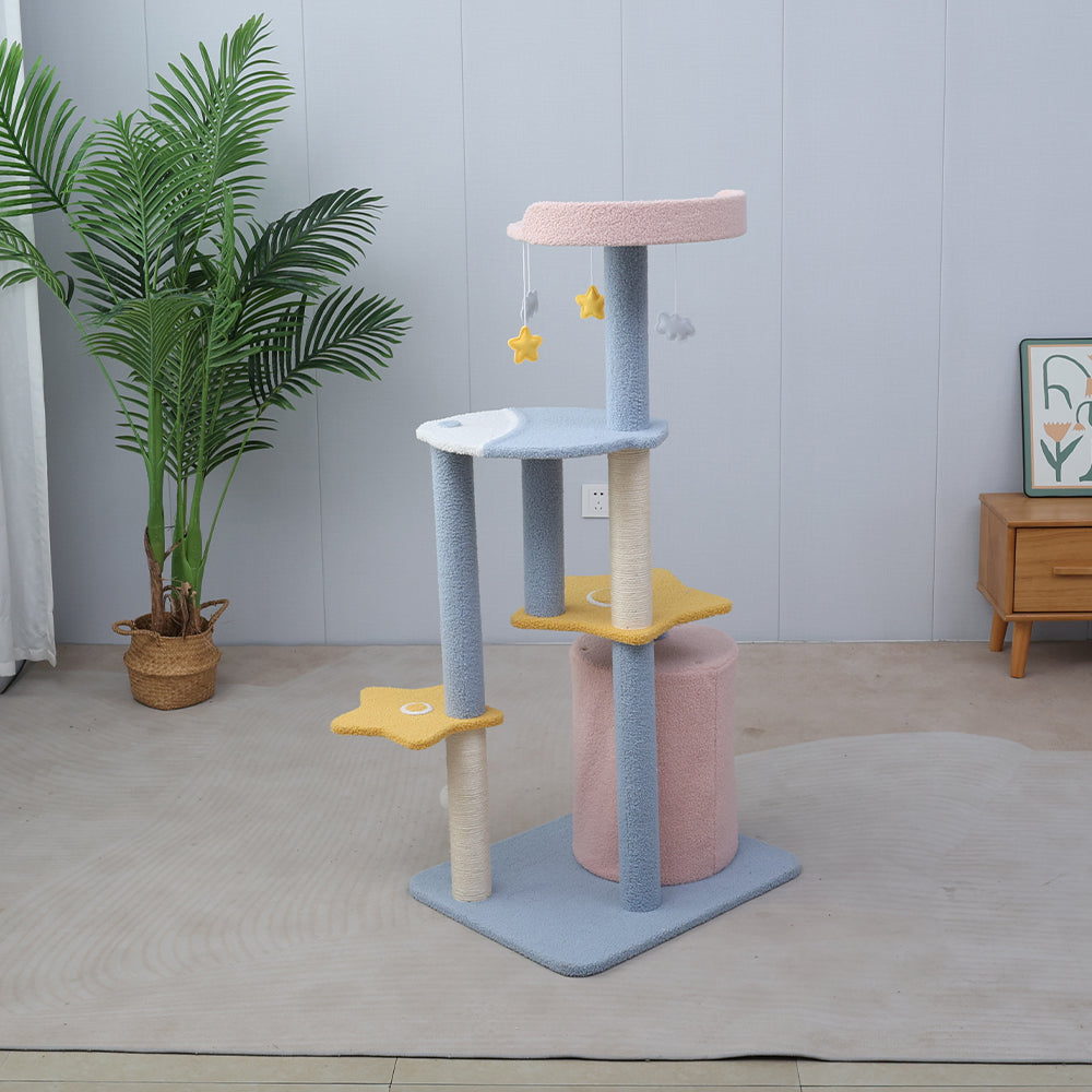 Is your cat climbing all over your furniture and leaving behind unsightly scratches? Do you want to give your feline friend a fun place to play and exercise without ruining your home décor? If so, then this MARTINA Ocean Explore with Hiding Cave Large Cat Climbing Tree is the perfect solution! Made from stable, durable materials, this stylish cat climbing frame features a composite fleece and natural sisal wrap that is gentle on the kitty's paws. There are also cute pendants that will satisfy your cat's hunting nature while providing hours of playful fun. The thickened sisal column is dense and scratch-resistant, making it ideal for cats who like to sharpen their claws. Plus, there's even a cave where they can hide and rest.