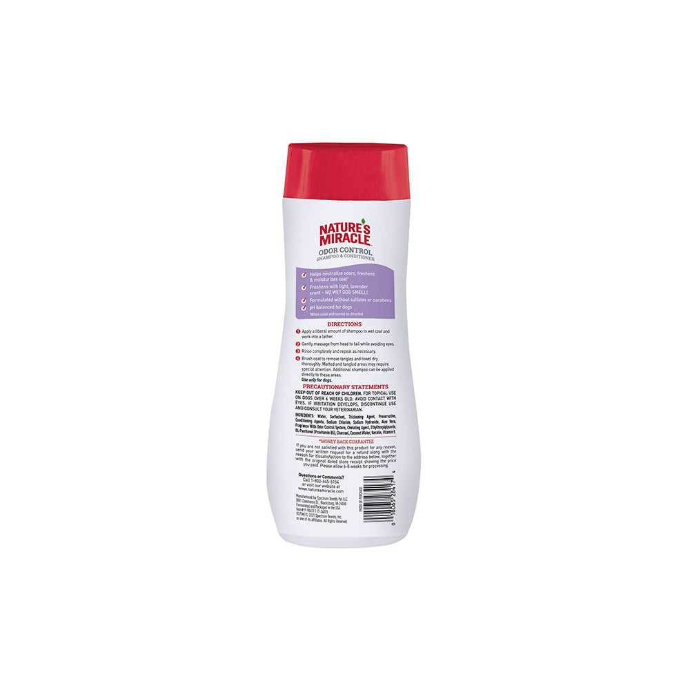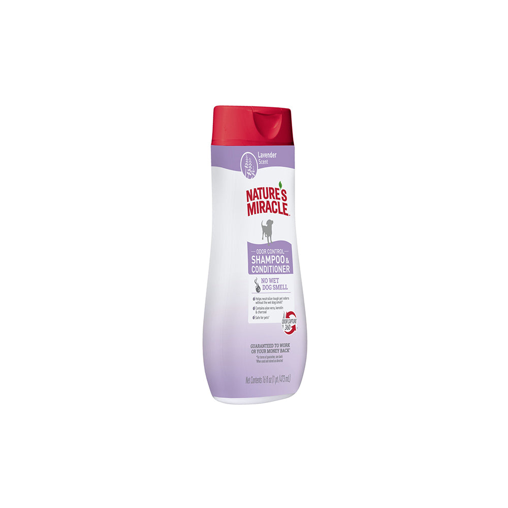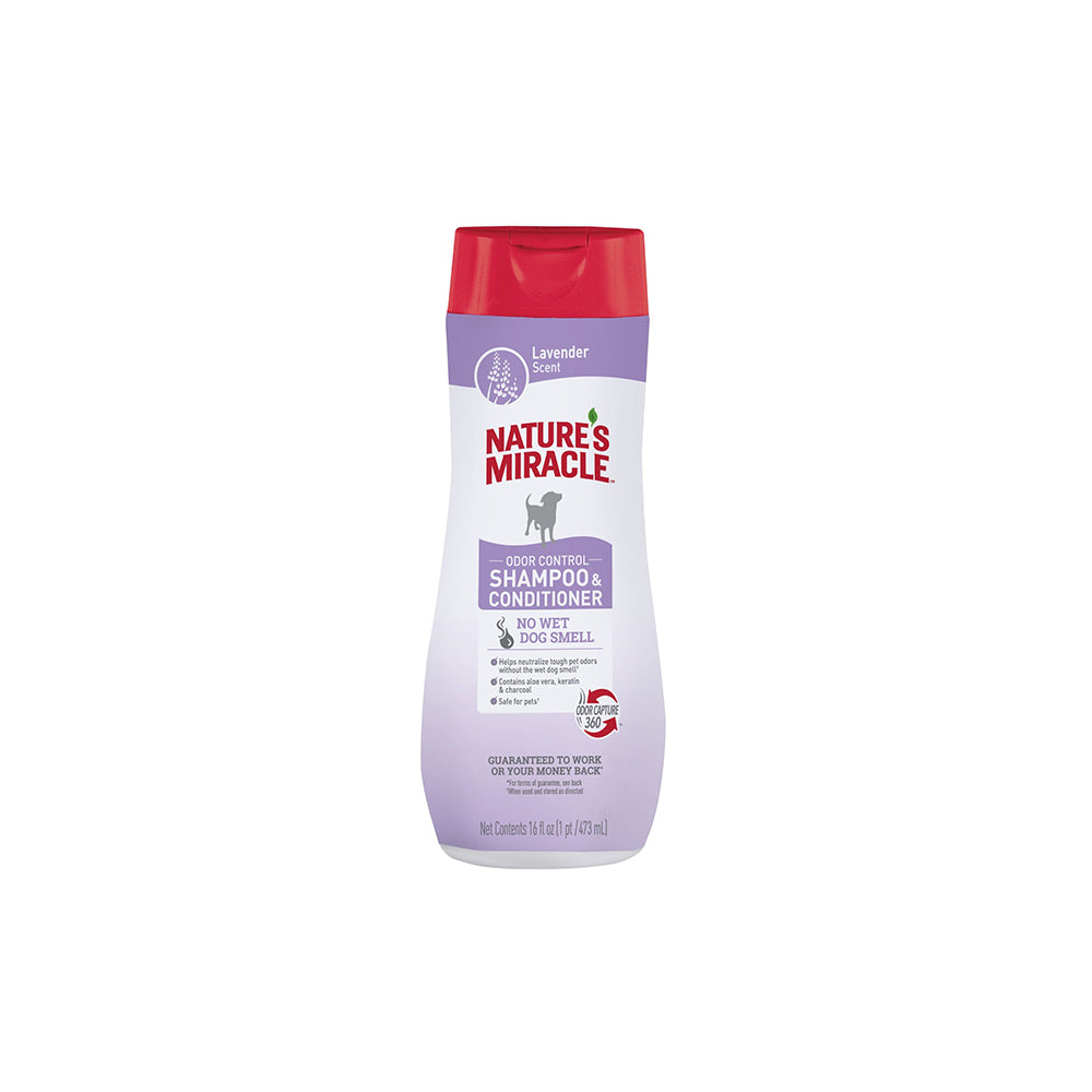 When your dog's strong odor begins to make you wince, it's time to use Nature's Miracle Odor Control Shampoo & Conditioner! This updated formula effectively neutralizes smells, leaving a subtle lavender fragrance without the lingering wet dog scent. Infused with aloe vera and balanced for pH, it offers the ultimate grooming experience for your dog.